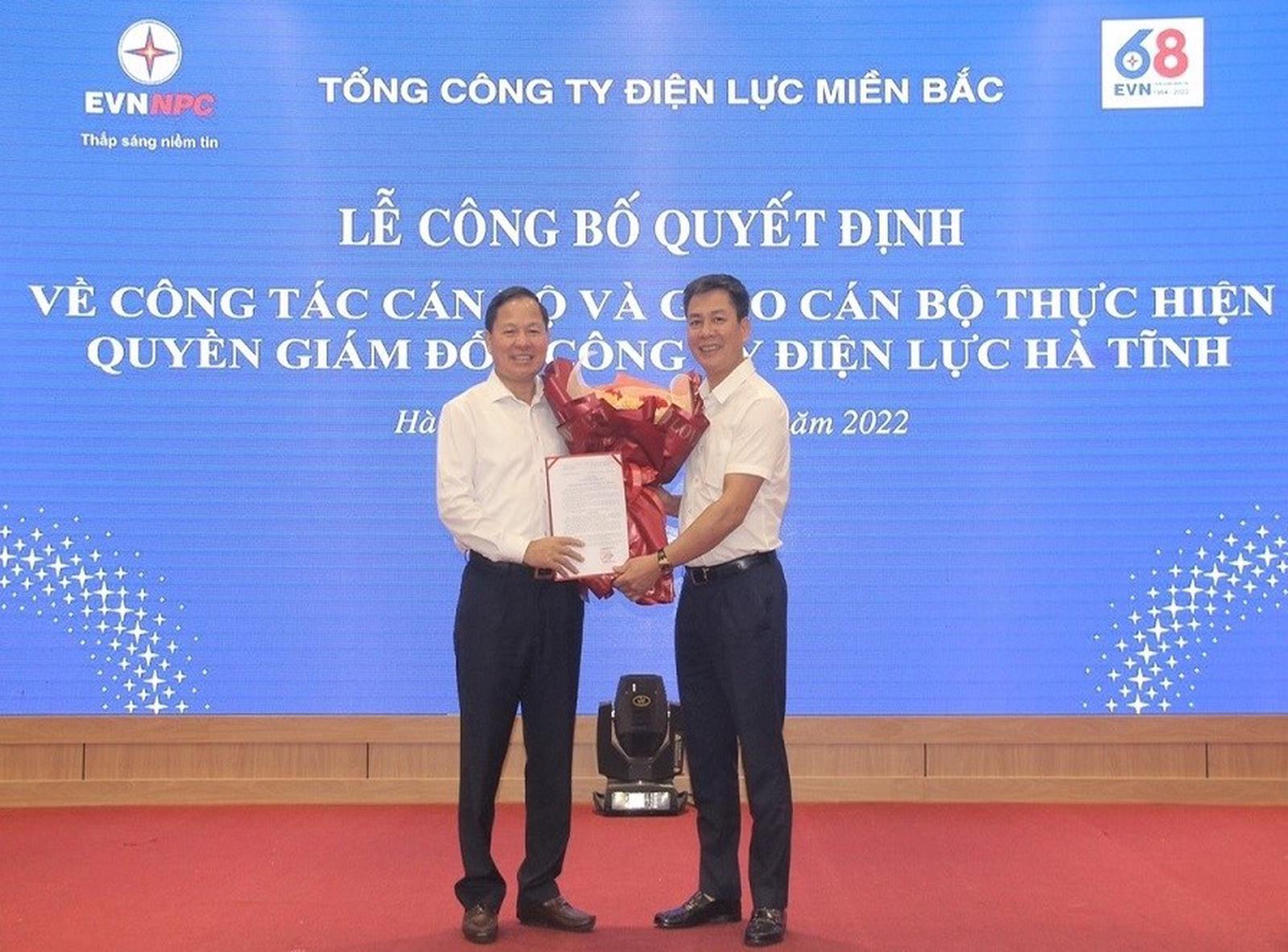 Theo đó, Tổng công ty Điện lực miền Bắc có Quyết định điều động và bổ nhiệm ông Nguyễn Phúc Phong, Giám đốc PC Hà Tĩnh giữ chức vụ Phó Trưởng ban Kiểm tra và thanh tra Tổng công ty kể từ ngày 01/11/2022; giao ông Lê Quang Thái - Phó Tổng Giám đốc EVNNPC kiêm nhiệm thực hiện quyền của Giám đốc PC Hà Tĩnh thay ông Nguyễn Phúc Phong kể từ ngày 01/11/2022 cho đến khi có Quyết định kiện toàn chức danh Giám đốc PC Hà Tĩnh.