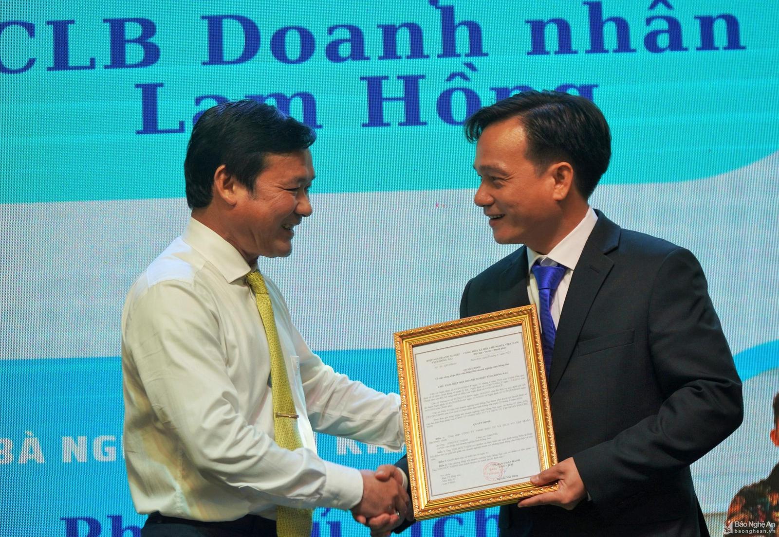 Đại diện CLB cũng đã trao giấy chứng nhận cho 68 hội viên, đồng thời, công bố Ban Chấp hành CLB Doanh nhân Lam Hồng tại Đồng Nai. Cụ thể: Ông Tôn Đức Thịnh - Chủ tịch CLB; ông Nguyễn Mạnh Hùng - Phó Chủ tịch; ông Lê Văn Hoàng - Phó Chủ tịch; bà Nguyễn Thị Kim Sương - Phó Chủ tịch.