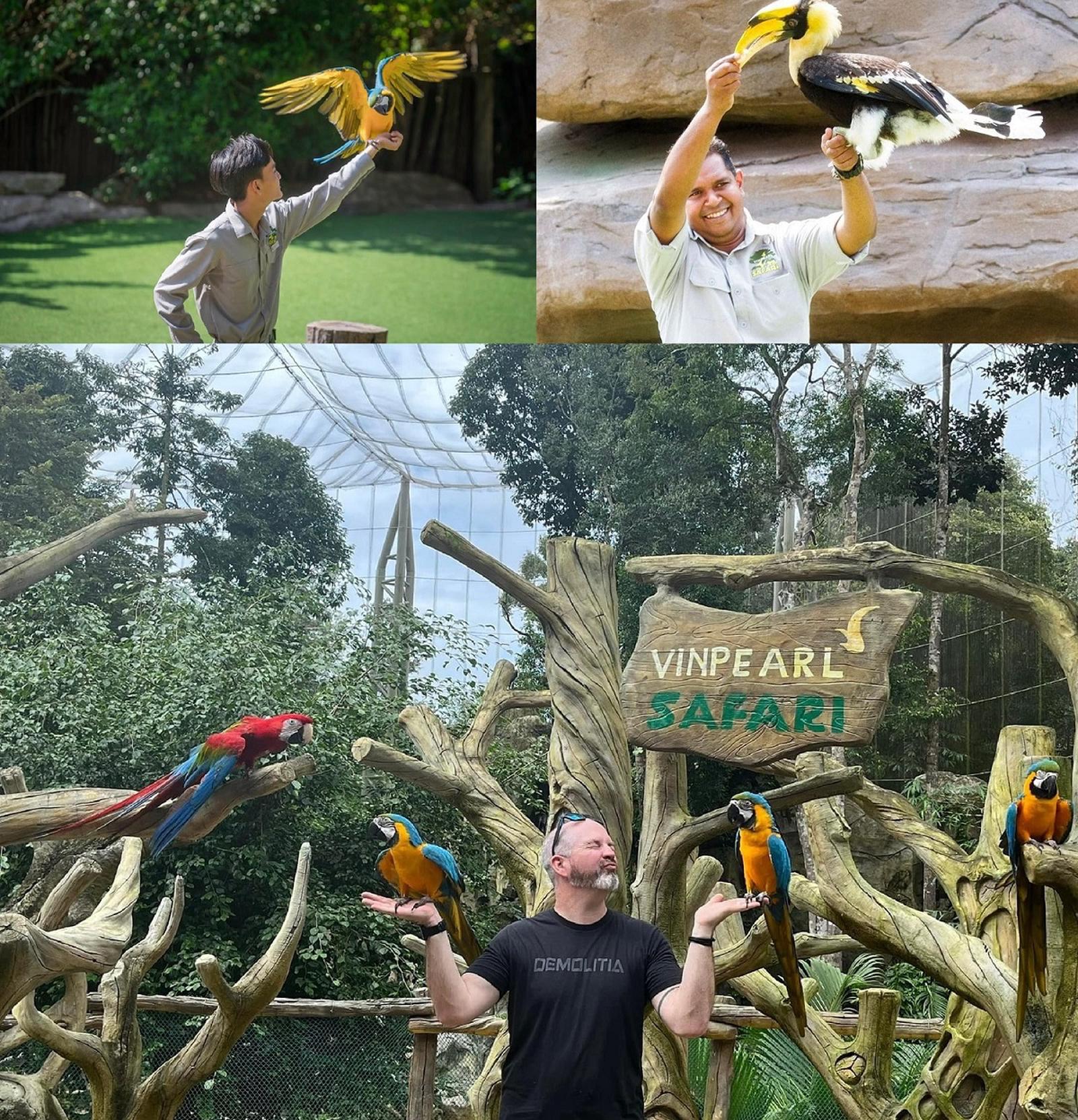 Nỗi niềm luyến tiếc khi phải rời phân khu Kid’s Zoo của các bé dường như nhanh chóng tan biến khi hàng loạt trải nghiệm thú vị và nhiều bất ngờ trải dài khắp khuôn viên hơn 380 ha của Vinpearl Safari. Đó là show biểu diễn động vật chuyên nghiệp, với sự góp mặt của các “nghệ sĩ” thuộc các loài chim hồng hoàng, vẹt, bồ nông, đại bàng… với nhiều màn trình diễn đặc sắc và bất ngờ về tập tính mỗi loài, đem lại sự thích thú cho du khách.