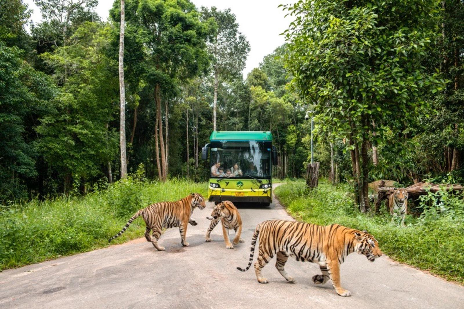Ẩn sâu sau bụi cỏ cao là ánh mắt sắc lẹm của chú hổ Belgan đang thu mình trong tư thế săn mảng thịt tươi đang treo lơ lửng trên cành cây. Thỉnh thoảng có 2-3 vị “chúa sơn lâm” nghịch ngợm dạo bước ngay trước mũi xe. Qua lớp kính cường lực, khoảng cách giữa con người và thiên nhiên hoang dã trở nên gần gũi hơn bao giờ hết, đem lại cảm giác vừa thích thú vừa hồi hộp khó tả cho du khách.
