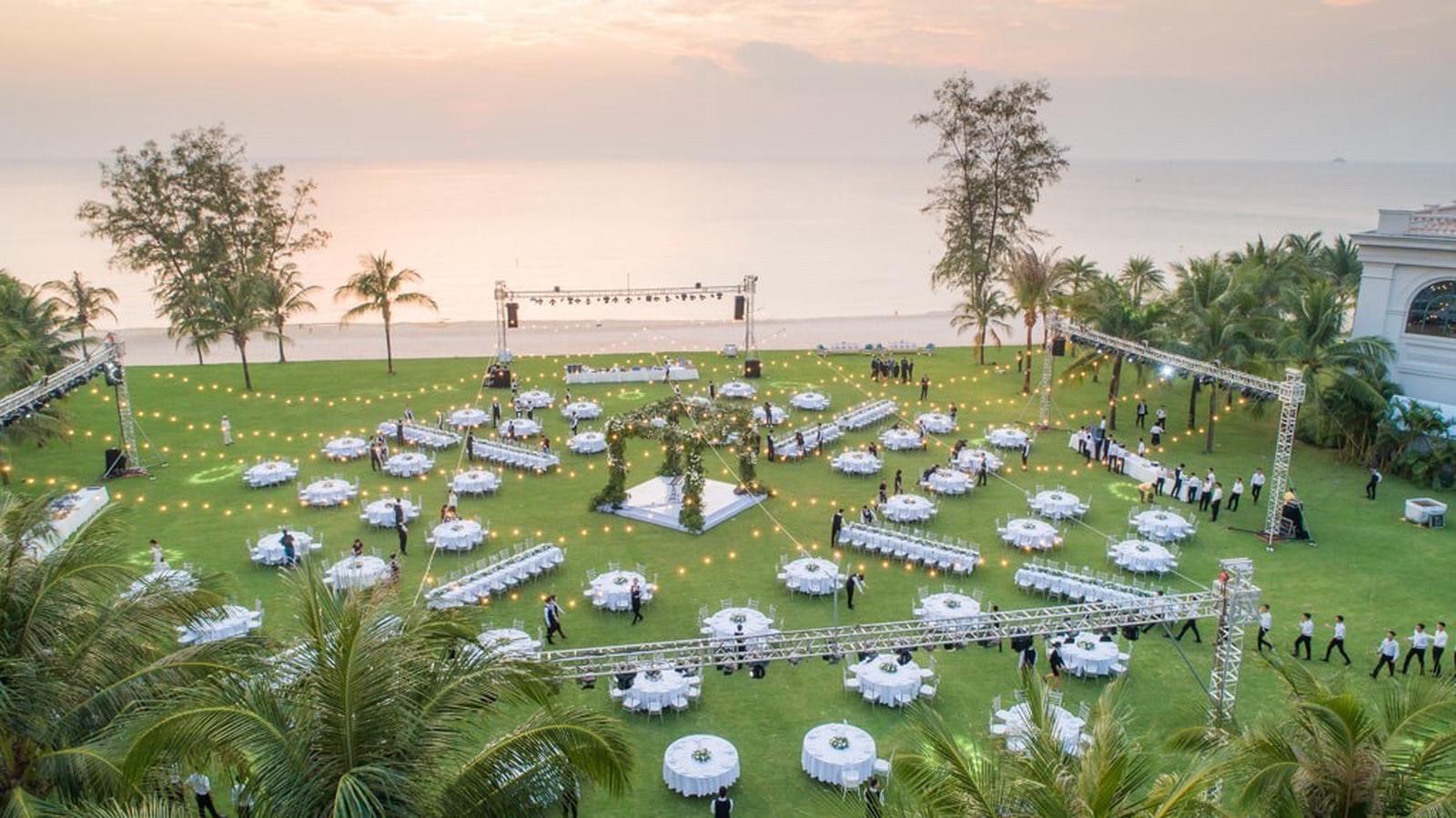 Ngoài các không gian tiệc cưới ngoài trời trong nội thành, địa điểm được yêu thích của tiệc cưới xanh những năm gần đây phải kể đến các điểm đến kề cận biển xanh cát trắng như Vinpearl Resort & Spa Hạ Long, Vinpearl Resort & Golf Nam Hội An hay Vinpearl Resort & Spa Phú Quốc.