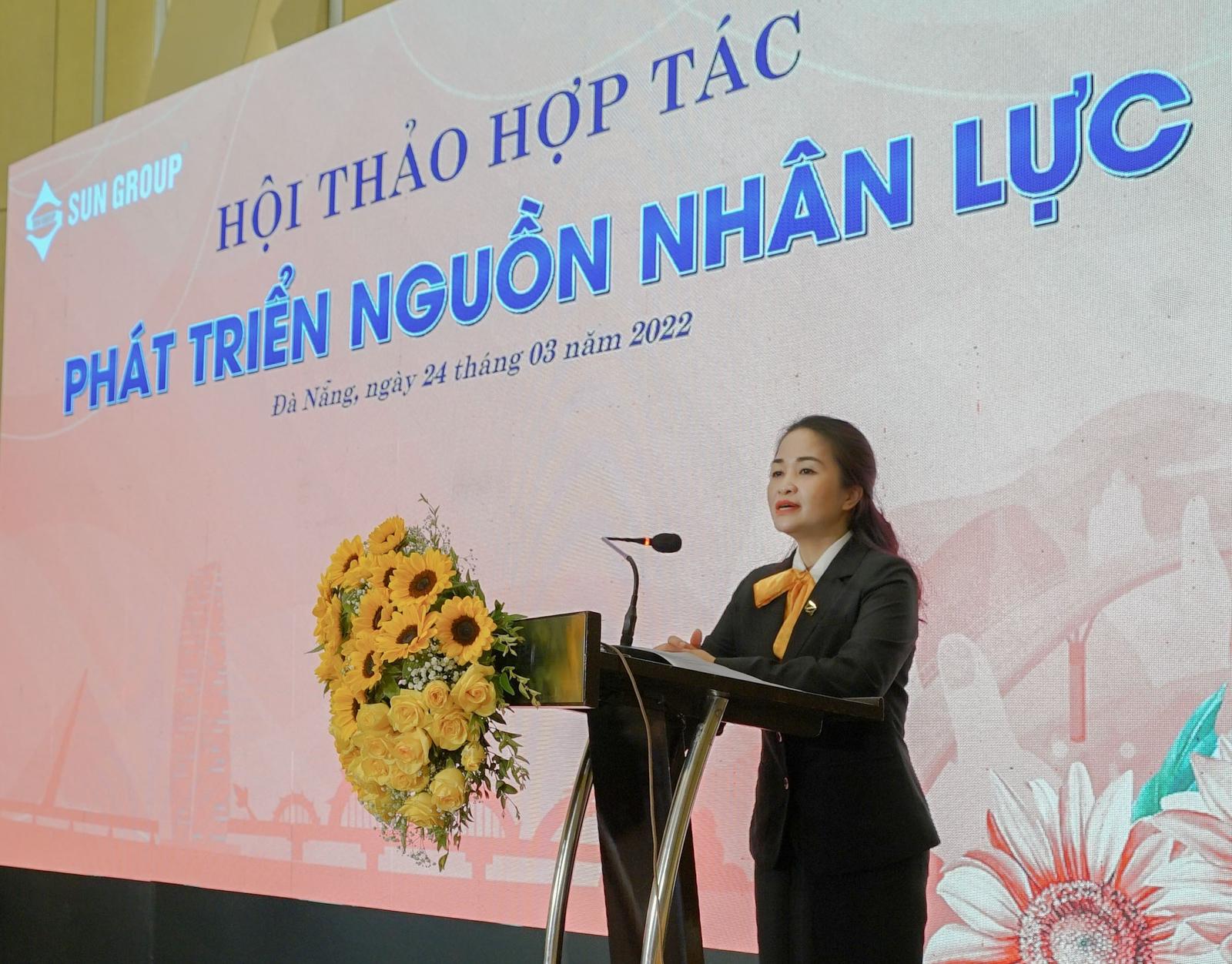 Bà Vũ Thị Xuân Thu - Trưởng ban Nhân sự Tập đoàn Sun Group khẳng định: “Chúng tôi tin tưởng sẽ nhận được sự ủng hộ, chia sẻ của Sở LĐTBXH TP Đà Nẵng cùng sự gắn kết, đồng hành của các cơ sở giáo dục đào tạo. Chính yếu tố này sẽ tạo nền tảng để Sun Group có những chuyển đổi vượt bậc trong công tác đào tạo, tuyển sinh, đánh giá kĩ năng nghề nghiệp đối với lực lượng lao động trên địa bàn vùng. Từ đó, tạo dựng nguồn cung ứng lao động dồi dào, lành nghề, chuyên nghiệp cho các cơ sở kinh doanh vận hành của Sun Group trên toàn quốc”.