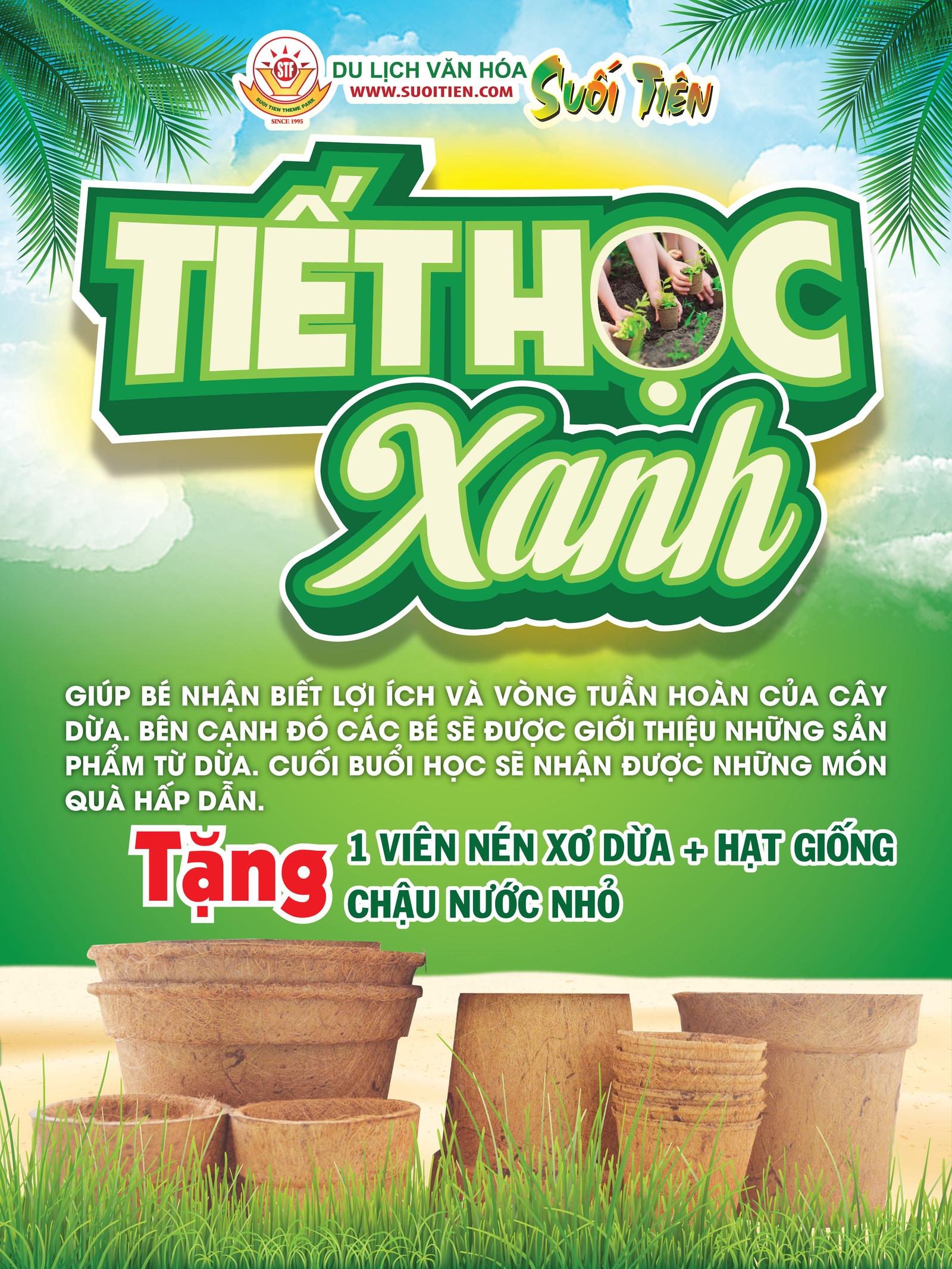 Các du khách nhí có cơ hội tham gia chương trình “Tiết học xanh” với mục đích cho các bé nhận thức về việc trồng cây, bảo vệ môi trường, hướng dẫn các bé cách trồng cây, gieo hạt và làm cách nào để cây trưởng thành.