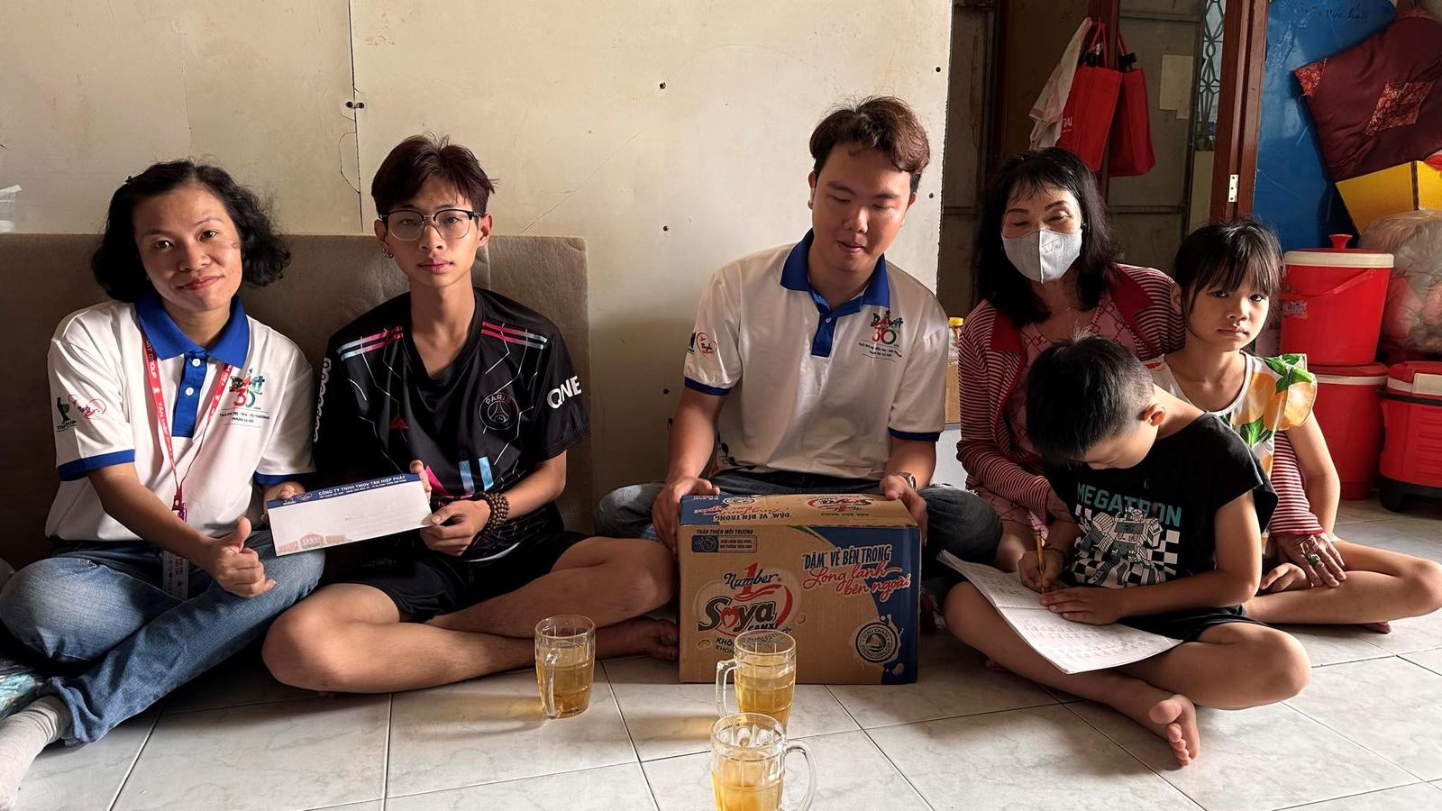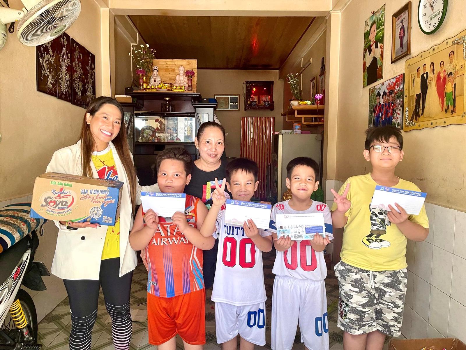 Bà Vũ Phương Thanh, đại sứ thương hiệu Number 1 thăm hỏi và tặng quà cho 4 em thiếu nhi trong chương trình “Cùng con đi tiếp cuộc đời” tại quận 8, TP.HCM.