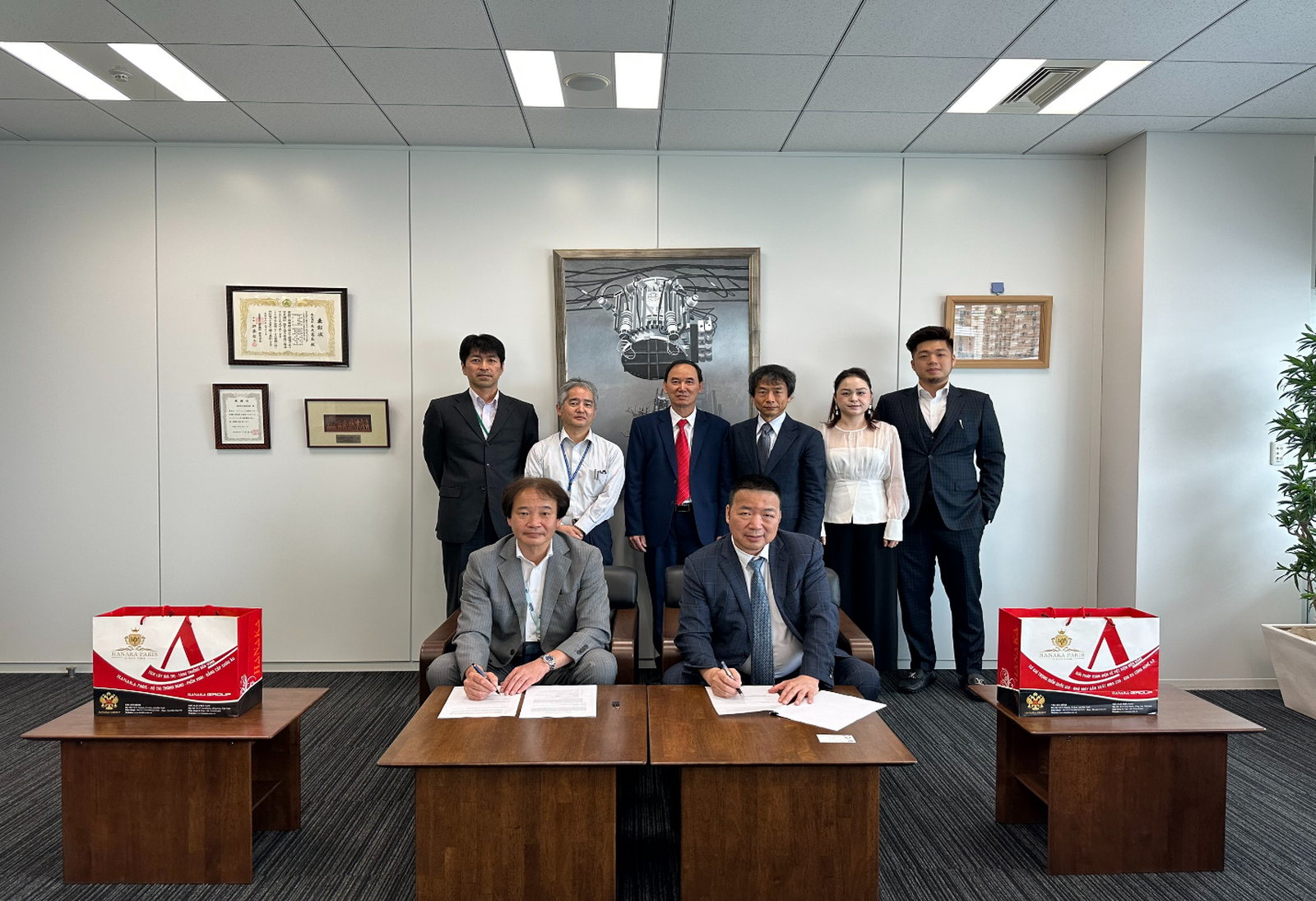 Tới tham dự buổi lễ ký kết, về phía Tập đoàn HANAKA có Chủ tịch Hội đồng Quản trị (HĐQT) Mẫn Ngọc Anh, Phó Chủ tịch HĐQT Mẫn Ngọc Hồng Kông, Thành viên HĐQT Nguyễn Thị Minh Phương, Phó Tổng Giám đốc Bùi Kim Huy (phụ trách sản xuất có kinh nghiệm 40 năm trong ngành sản xuất máy biến áp, 20 năm làm việc, cộng tác với TAKAOKA Nhật Bản).