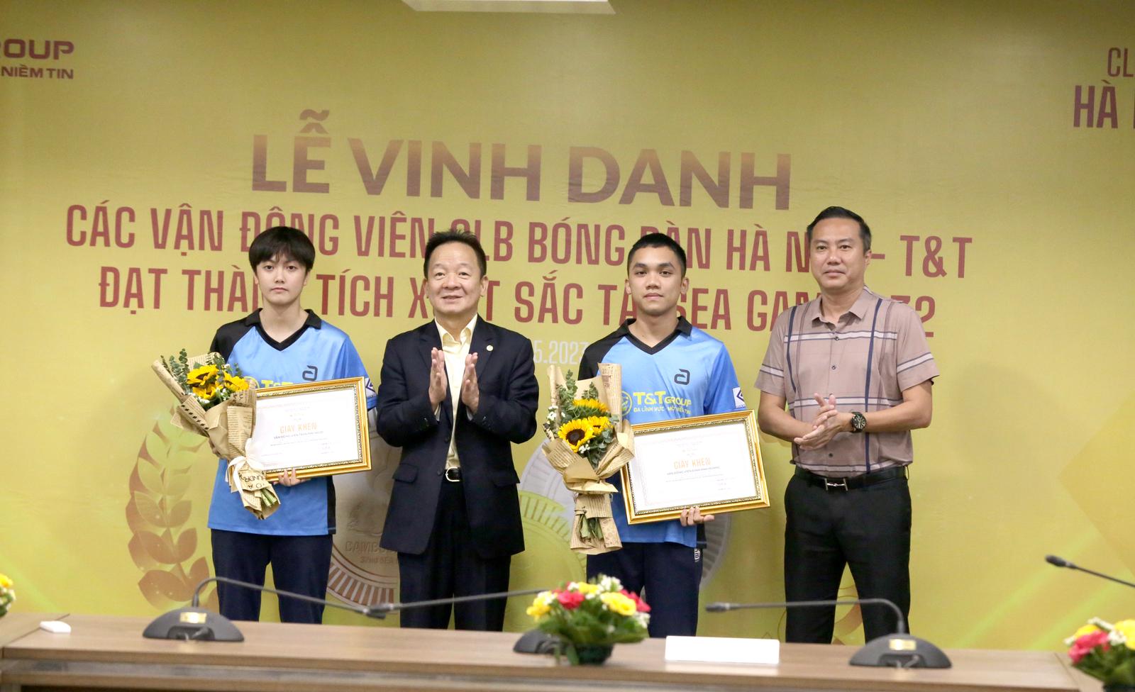 Trước những thành tích mang ý nghĩa lịch sử đó, ngày 19/5, Tập đoàn T&T Group tổ chức lễ vinh danh các vận động viên CLB Bóng bàn Hà Nội T&T đạt thành tích xuất sắc tại SEA Games 32, để kịp thời động viên, khích lệ cũng như ghi nhận sự cố gắng, cống hiến của các vận động viên Mai Ngọc, Anh Hoàng và Đình Đức cho bóng bàn Việt Nam nói riêng và thể thao Việt Nam nói chung.