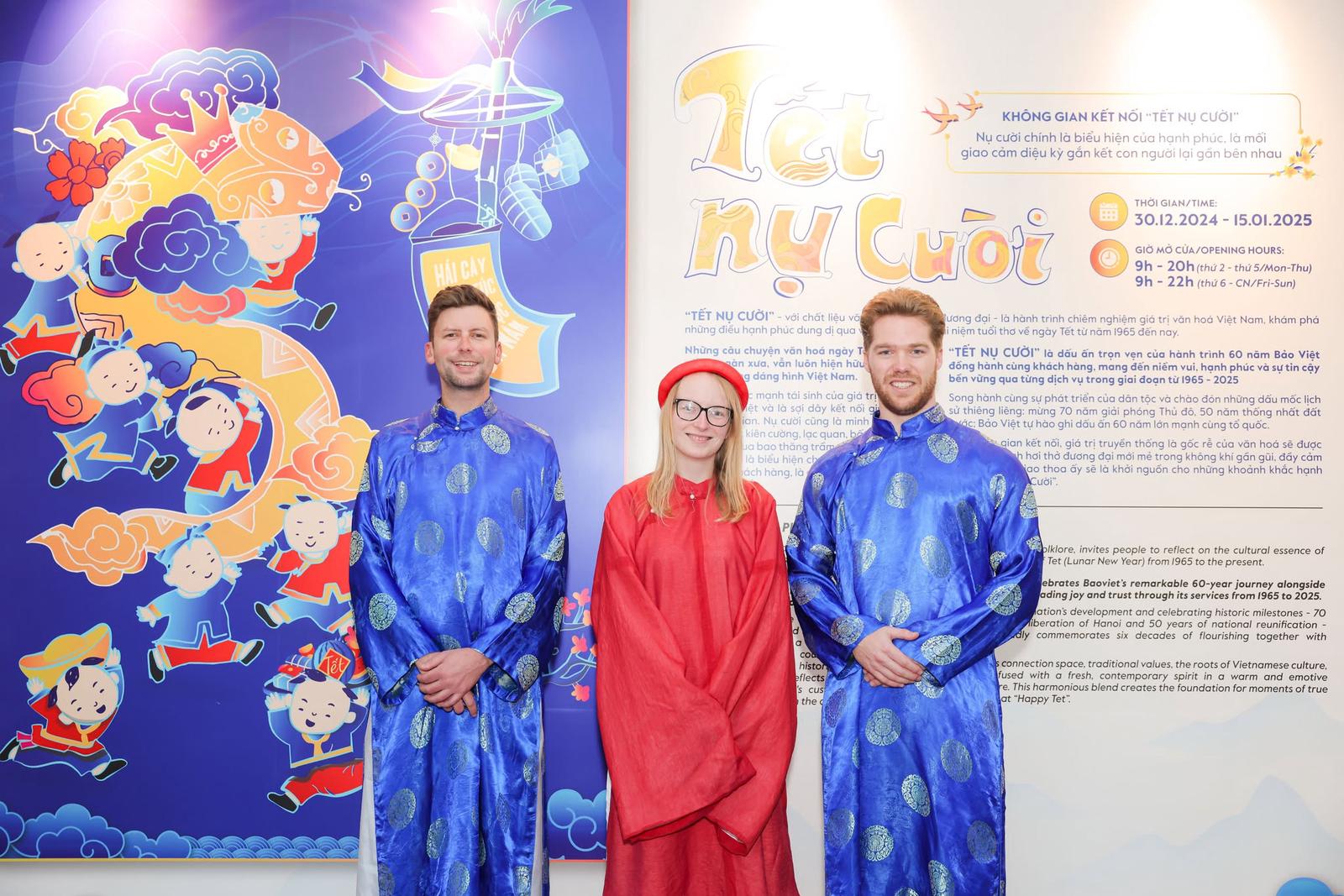 Không gian Tết nụ cười được Bảo Việt tổ chức nhân dịp kỷ niệm các dấu mốc trọng đại: 70 năm giải phóng Thủ đô, 50 năm thống nhất đất nước, và 60 năm thành lập Bảo Việt. Sự kiện được diễn ra từ nay đến hết ngày 15/1, với đa dạng hoạt động như thưởng lãm, đêm nhạc nghệ thuật, trải nghiệm cổ phục, làm hoa kẽm nhung, xin chữ ông đồ, tô tranh Hàng Trống hay trang trí khung ảnh Tết.