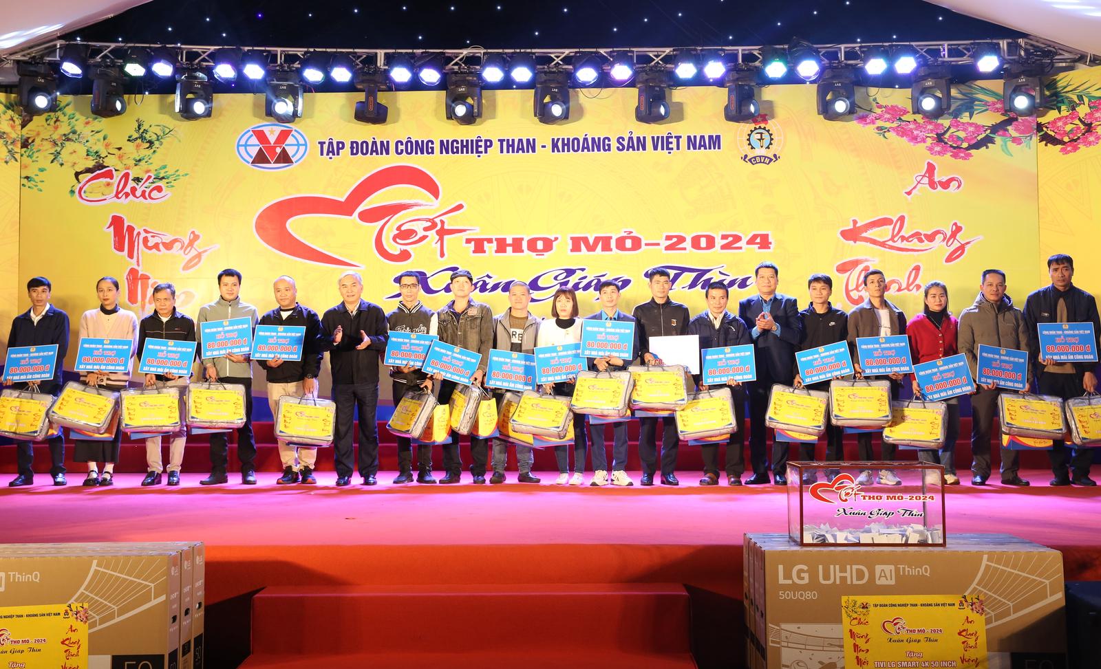 Trong Chương trình “Tết thợ mỏ - năm 2024” Xuân Giáp Thìn, TKV tặng quà hỗ trợ trực tiếp cho 1.500 lao động xuất sắc tiêu biểu, công nhân có hoàn cảnh khó khăn, diện chính sách (mỗi suất quà có mức 2 triệu đồng tiền mặt và quà hiện vật trị giá 500.000 đồng).