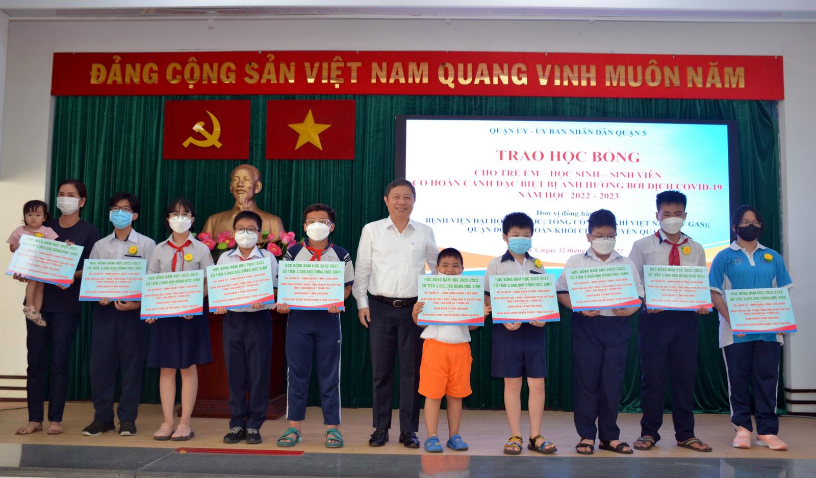 (Thanh tra)- Chào mừng Năm học mới, trong khuôn khổ hợp tác giữa Tổng Công ty Khí Việt Nam và Bệnh viện Đại học Y dược TP. HCM, 2 đơn vị đã cùng UBND Quận 5 tổ chức thăm hỏi và động viên các em học sinh mồ côi cha/mẹ trong đại dịch Covid-19 trên địa bàn Quận 5, nhằm chung tay hỗ trợ các em vượt qua khó khăn, vươn lên trong cuộc sống.