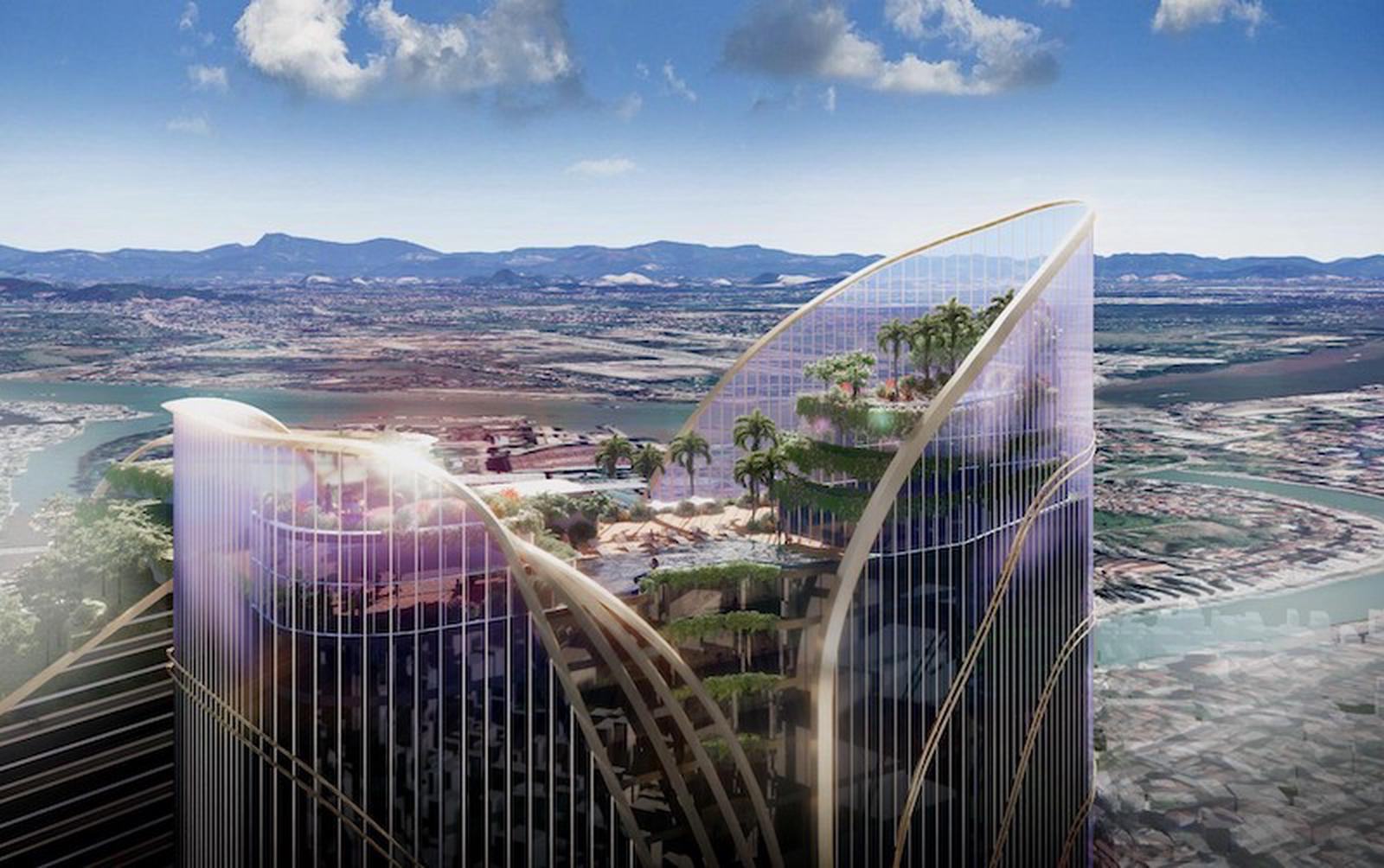 Với 2 tòa tháp gồm 40 tầng nổi và 2 tầng hầm có kiến trúc độc đáo mang đậm hơi thở bản địa, tổ hợp trung tâm thương mại Chợ Sắt được kỳ vọng tái hiện một dòng chảy thịnh vượng cho khu vực, thu hút khách du lịch muôn phương.
