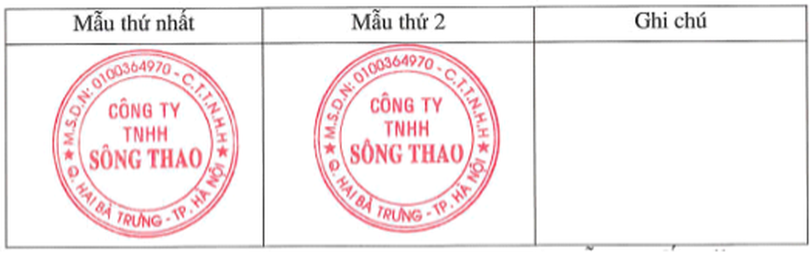 Ngoài mẫu con dấu nêu trên, Công ty TNHH Sông Thao không sử dụng bất kỳ mẫu con dấu nào khác kể từ thời điểm ngày 28 tháng 04 năm 2023.