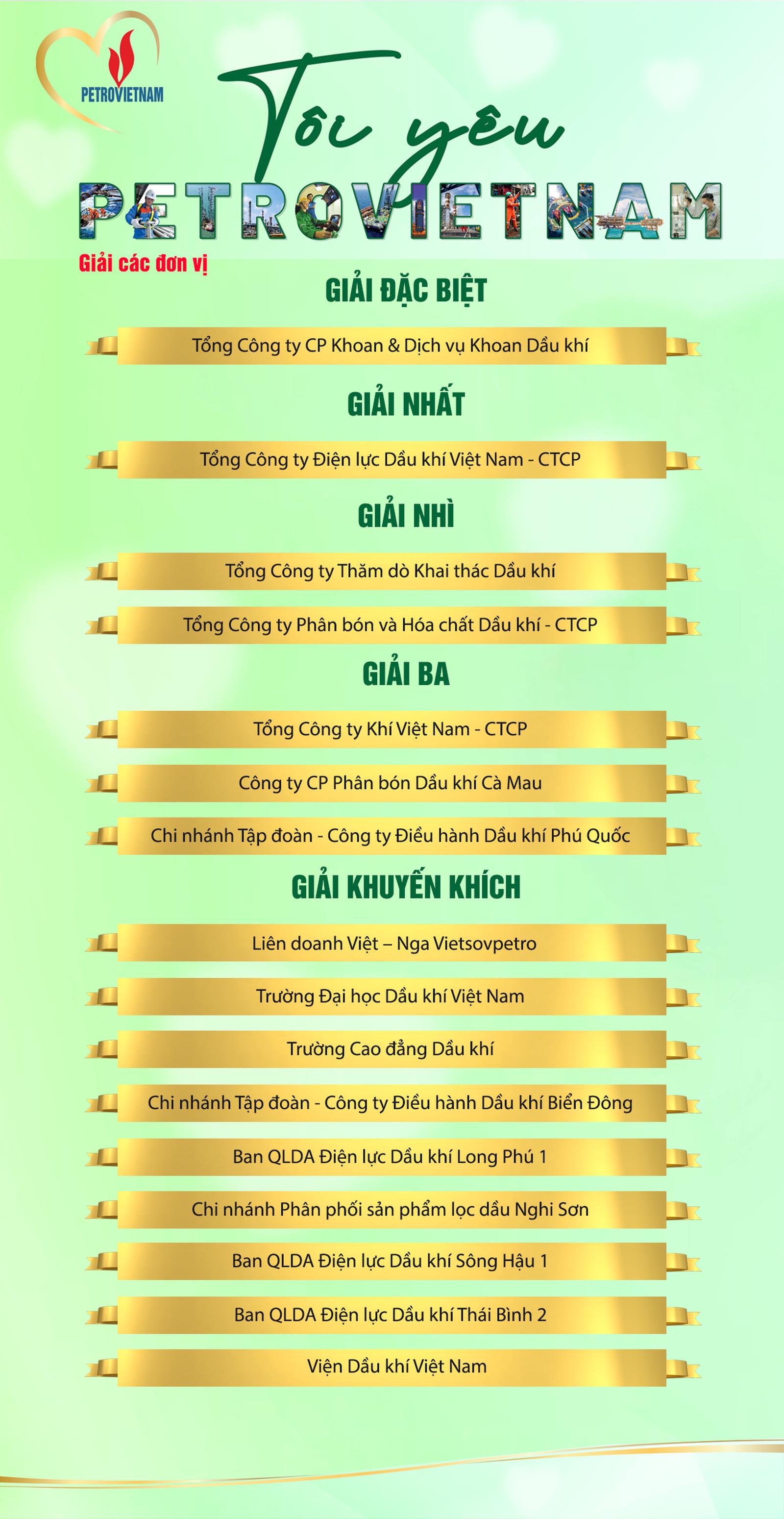 Tổng kết cuộc thi “Tôi yêu Petrovietnam”, đồng chí Trần Quang Dũng - Ủy viên Ban Thường vụ, Trưởng Ban Tuyên giao Đảng ủy, Trưởng Ban Truyền thông và Văn hóa doanh nghiệp Petrovietnam, Phó Chủ tịch Hội đồng cuộc thi cho biết, cuộc thi “Tôi yêu Petrovietnam” lần đầu tiên được tổ chức với quy mô toàn Tập đoàn đã thành công tốt đẹp, mang lại cho mỗi cán bộ, NLĐ những niềm vui, cảm hứng, tình yêu ngoài mong đợi và vượt mọi dự báo.
