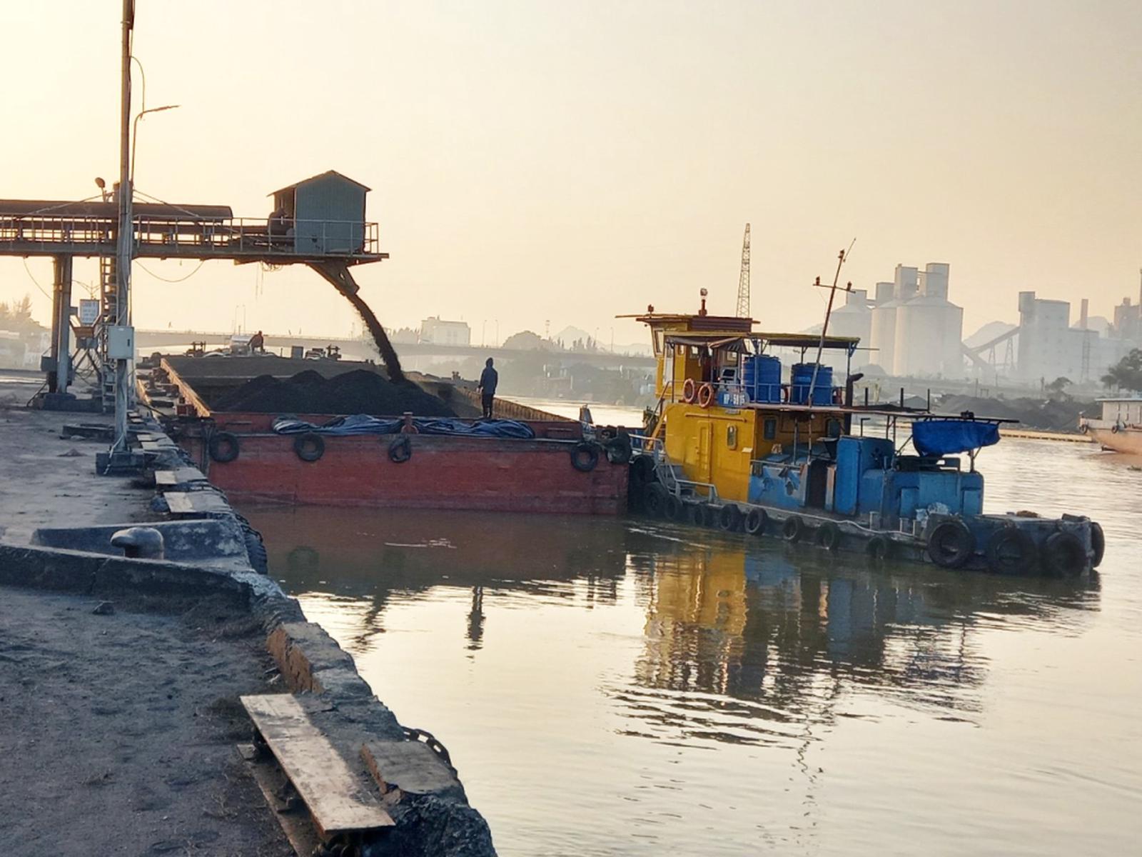 Hoạt động tiêu thụ than tại khu vực Cảng Bến Cân (Công ty Kho vận và Cảng Cẩm Phả) vào ngày mùng 4 Tết. Ảnh: TTTT