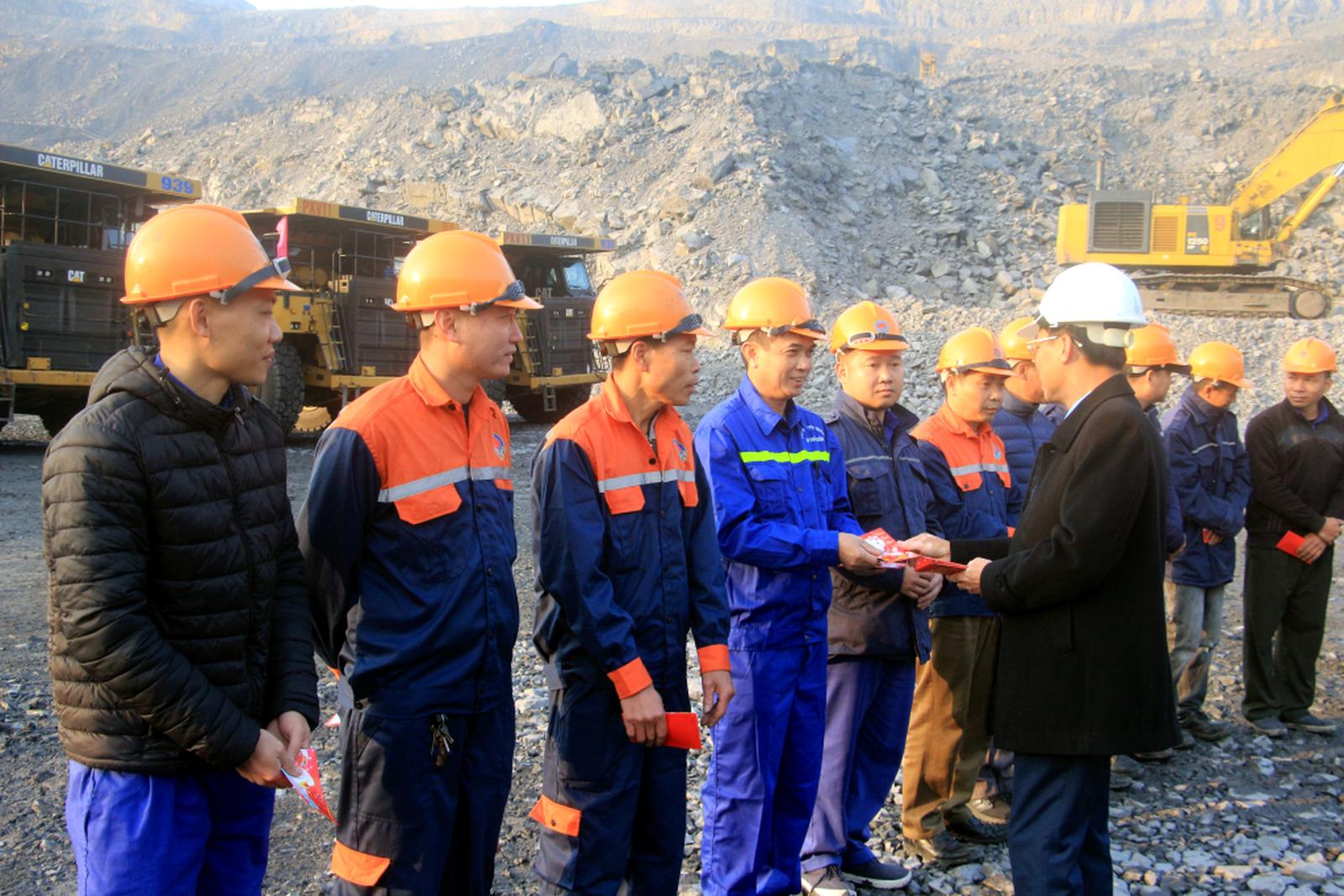 Ngày mùng 4 Tết, lãnh đạo Công ty Cổ phần Than Cao Sơn đến khai trường lì xì mừng tuổi công nhân, lao động nhân dịp khai xuân đầu năm mới. Ảnh: TTTT