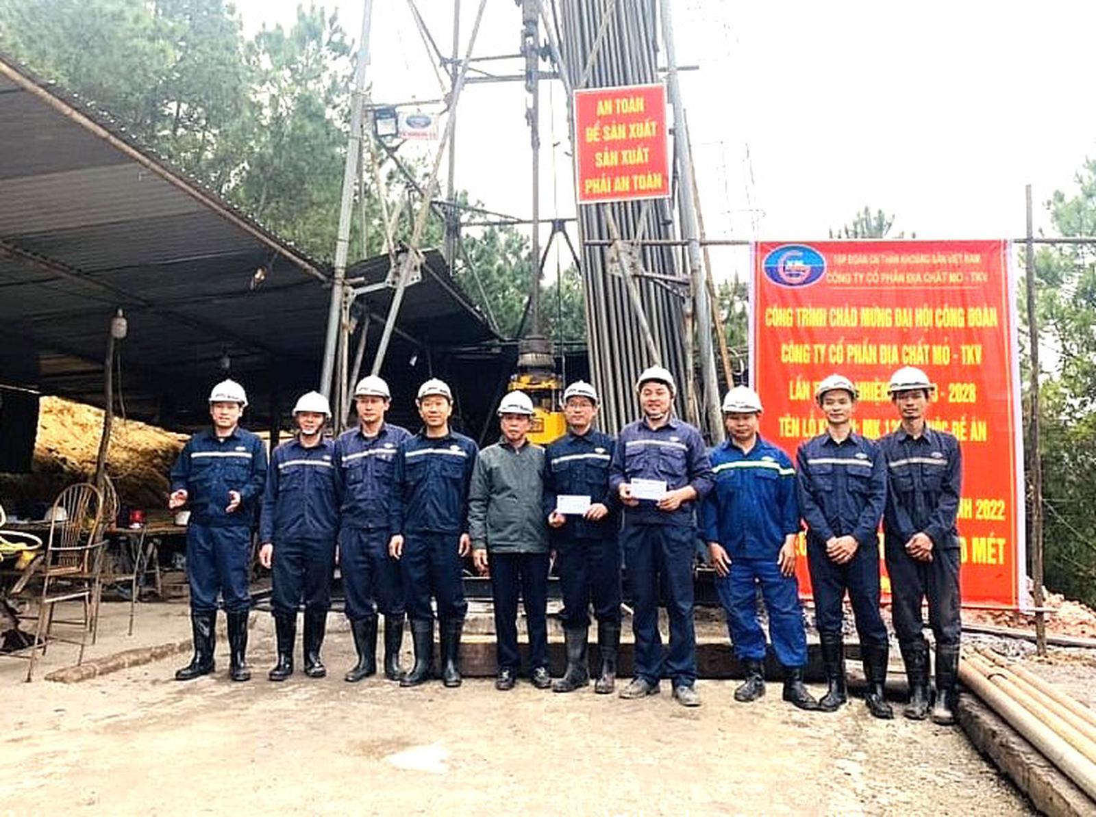 Lỗ khoan MK1227 hoàn thành có ý nghĩa rất lớn đối với tập thể, cán bộ công nhân viên chức, người lao động Công ty Cổ phần Địa chất mỏ để thiết thực chào mừng Đại hội Công đoàn Công ty lần thứ XX, nhiệm kỳ 2023 - 2028.