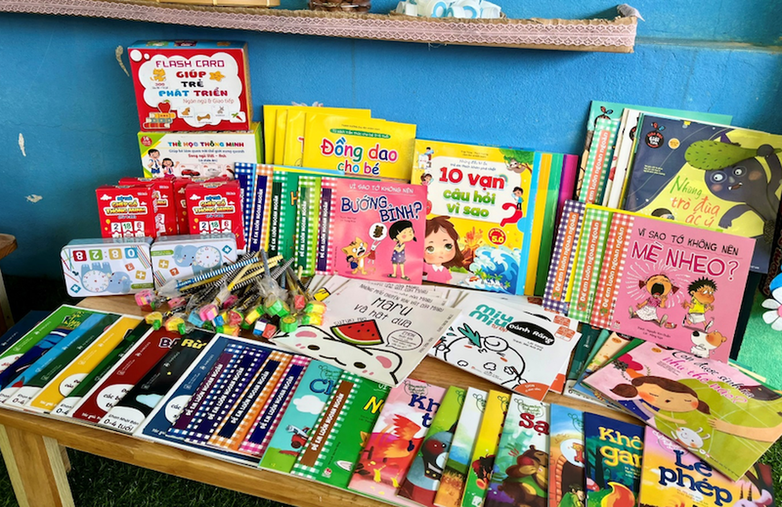 Ngoài ra, TNS Holdings cũng trao tặng 107 bộ đồ dùng học tập trị giá 3 triệu đồng bao gồm đất nặn, giấy màu, bút chì,... để các bạn học sinh tại đây có thêm những hoạt động thú vị tại không gian thư viện.