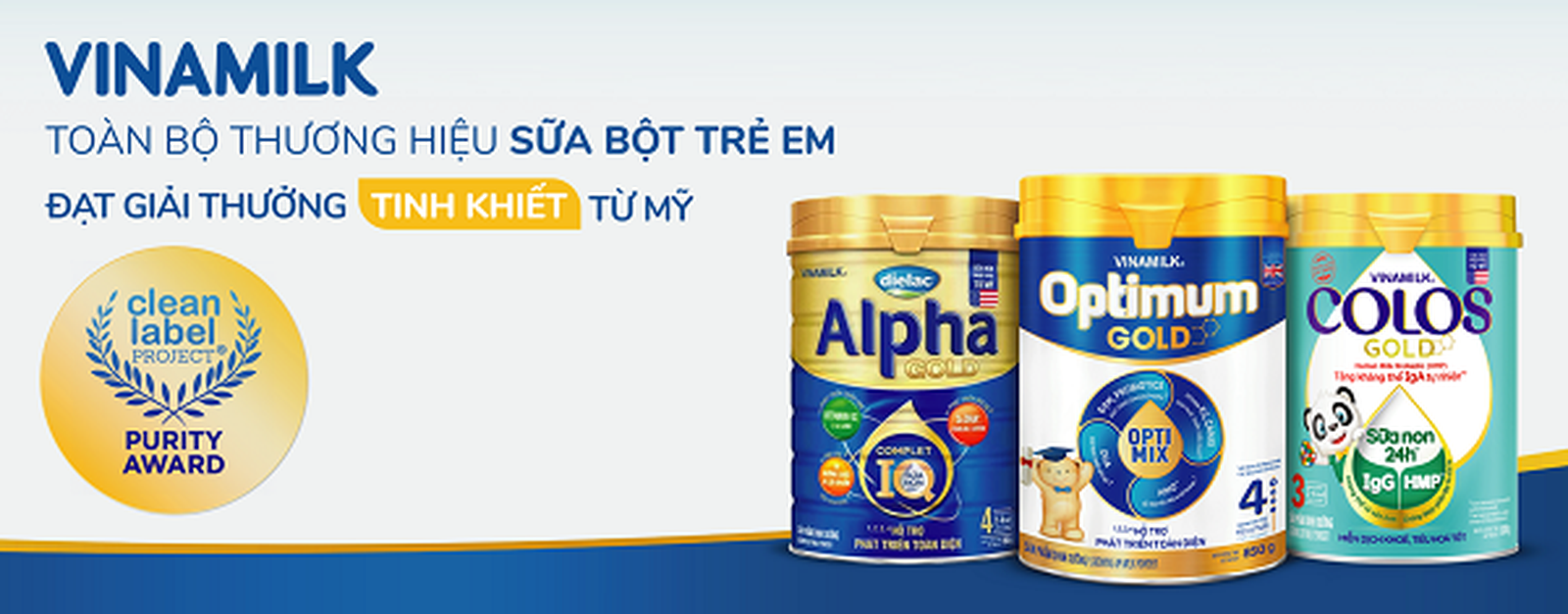 Optimum Gold tự hào là cánh chim đầu đàn của ngành hàng sữa bột trẻ em Vinamilk, trở thành thương hiệu sữa bột trẻ em đầu tiên của Châu Á đạt giải thưởng Purity Award. Chỉ sau một thời gian ngắn, toàn bộ các thương hiệu sữa bột trẻ em khác của Vinamilk cũng nhận được giải thưởng này của Clean Label Project (tại Mỹ). Đây là giải thưởng danh giá và khắt khe nhất thời điểm hiện tại về sự tinh khiết, an toàn và minh bạch của thực phẩm đối với người tiêu dùng. Theo đó, các nhãn hàng sữa bột trẻ em khác từ phân khúc trung cấp, phổ thông đến cao cấp của Vinamilk đều giành được giải thưởng này như YokoGold, ColosGold, Pedia Kenji, Dielac Grow Plus, Dielac Alpha, và Dielac Alpha Gold.