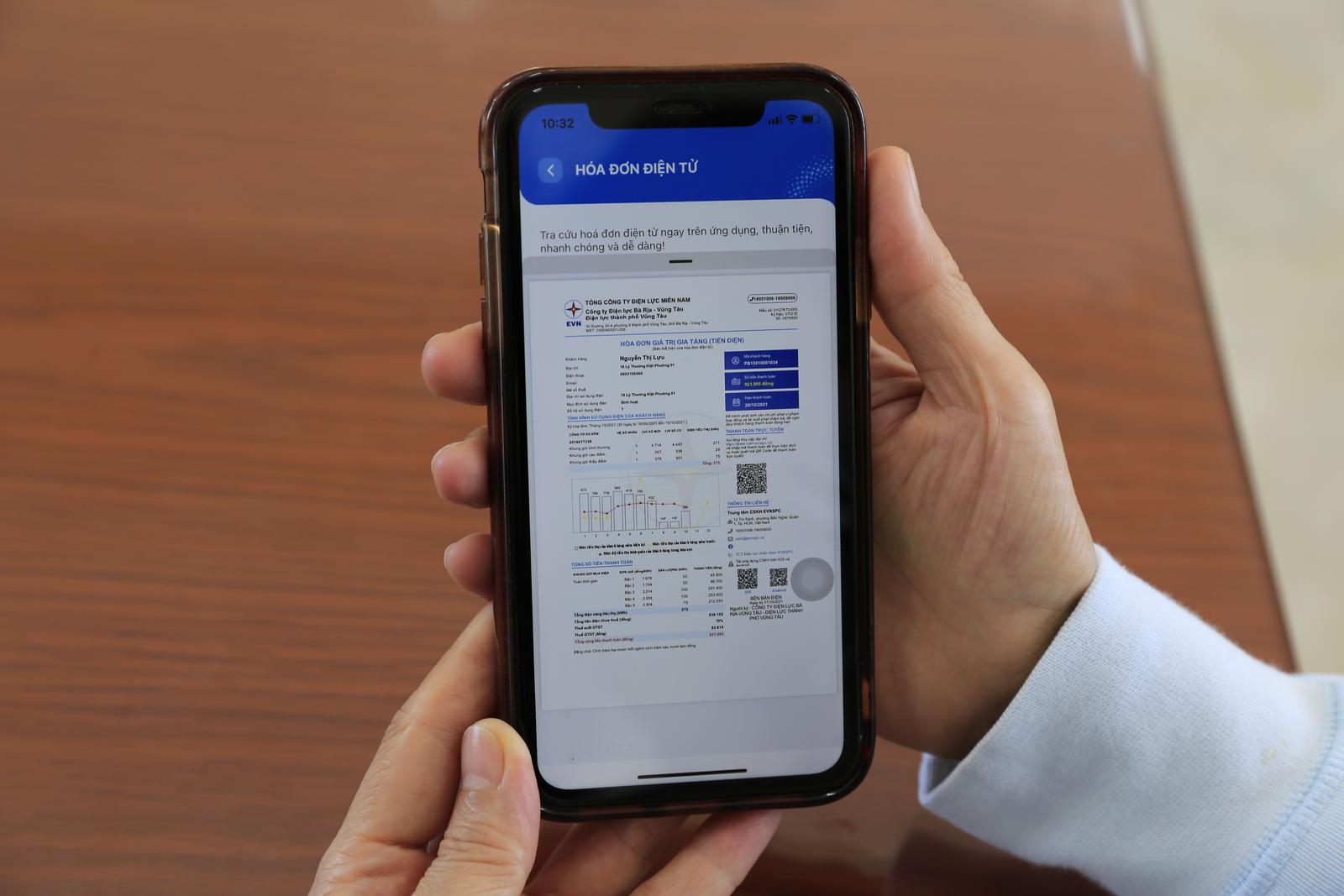 Khách hàng tại Bà Rịa–Vũng Tàu tra cứu hóa đơn điện tử trên App CSKH EVNSPC