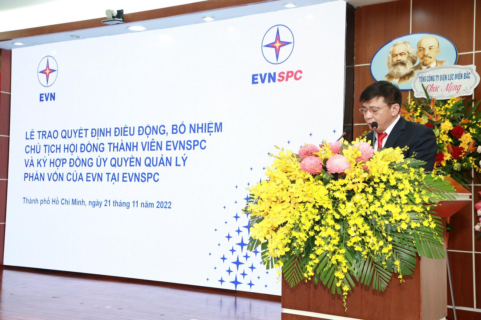 Phát biểu tại lễ công bố, Chủ tịch HĐTV EVN, ông Dương Quang Thành đã chúc mừng tân Chủ tịch HĐTV EVNSPC, gửi lời tri ân, ghi nhận những đóng góp của toàn thể cán bộ, công nhân viên, người lao động của EVNSPC qua các thế hệ đã luôn nỗ lực đồng hành cùng EVN xây dựng ngành Điện miền Nam ngày càng lớn mạnh và phát triển.