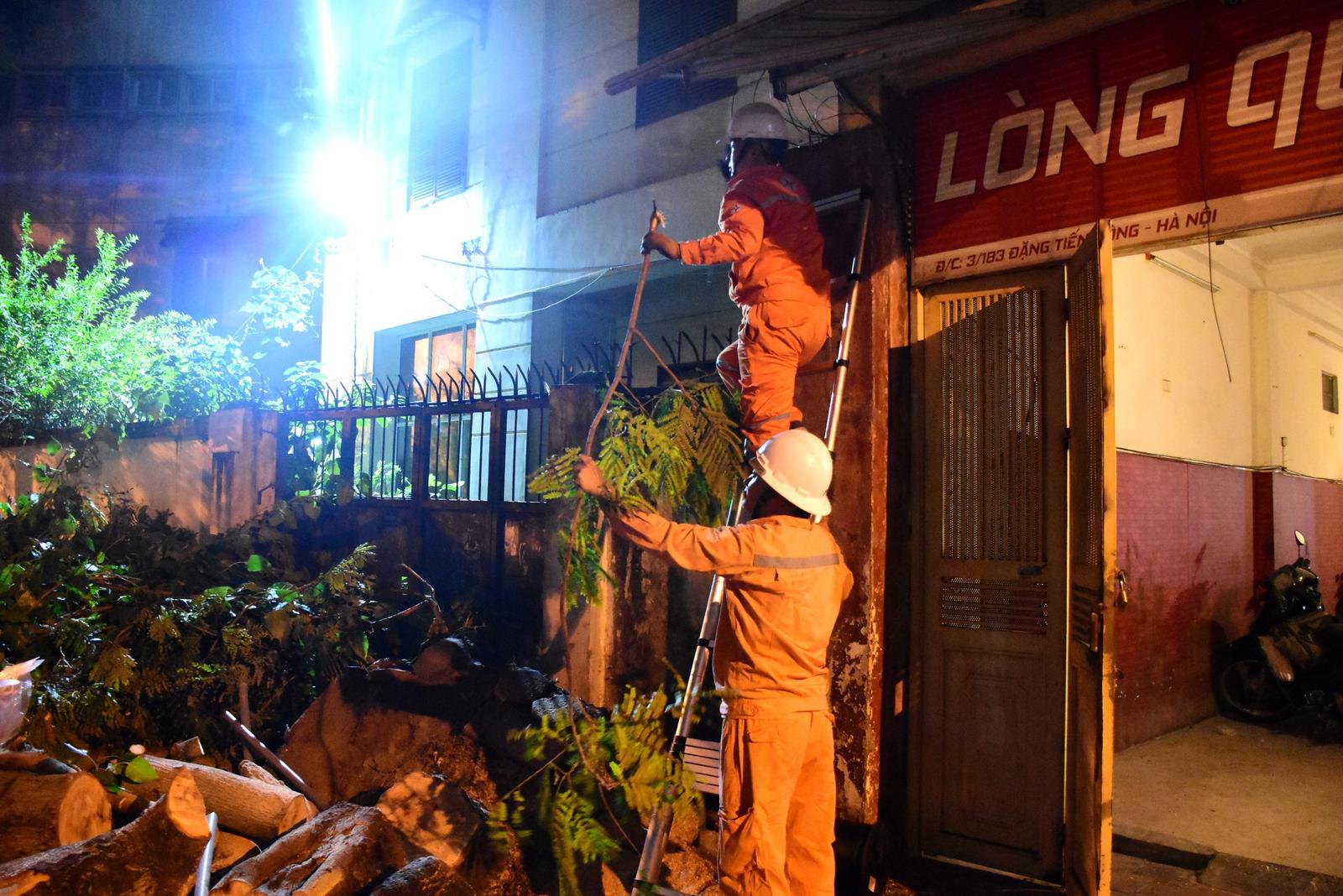 Tại Quận Đống Đa, các công nhân EVNHANOI đã lập tức triển khai hỗ trợ khắc phục hậu quả do hoàn lưu bão gây ra, đảm bảo nguồn điện liên tục, ổn định phục vụ sinh hoạt cho khách hàng
