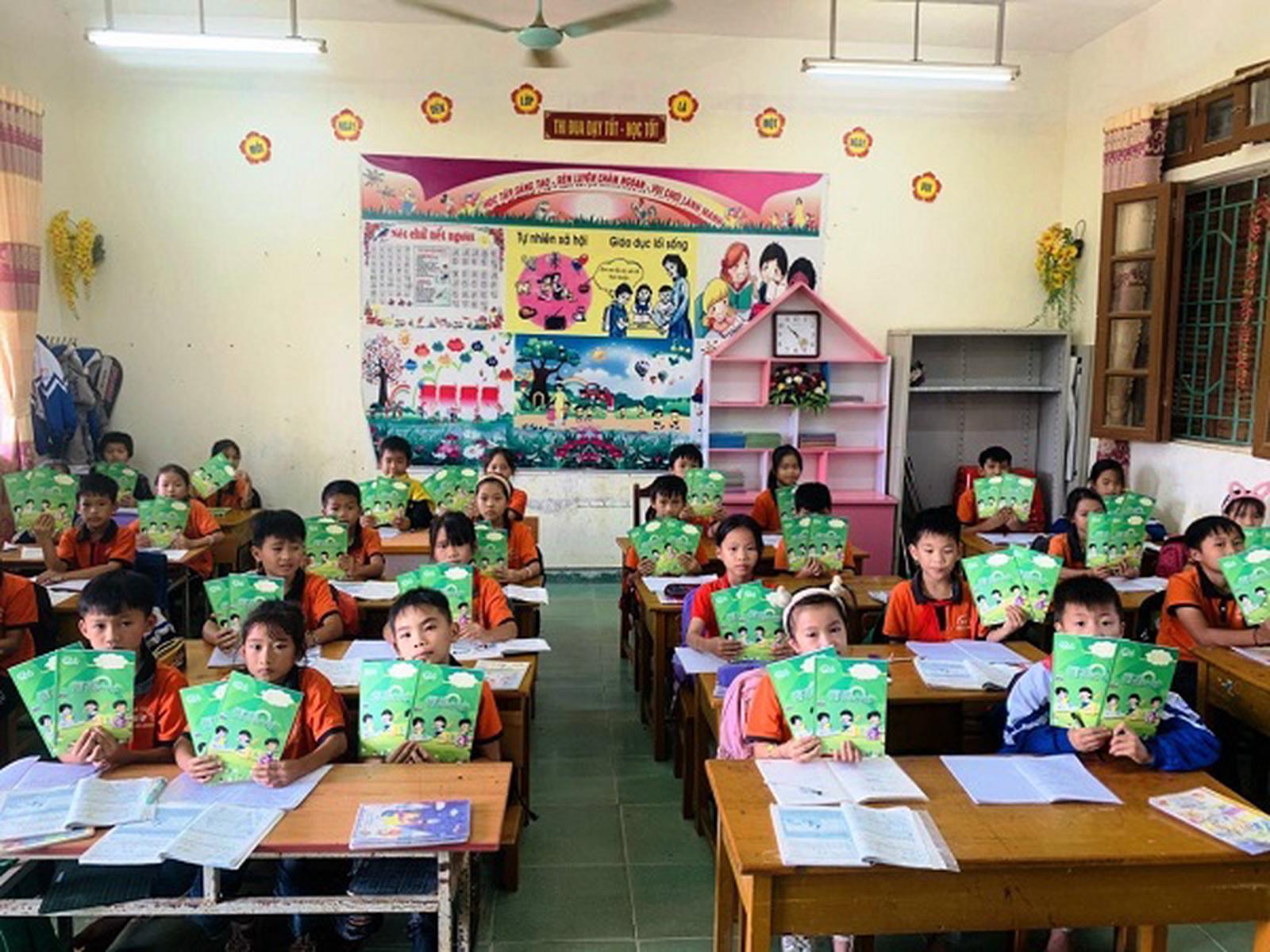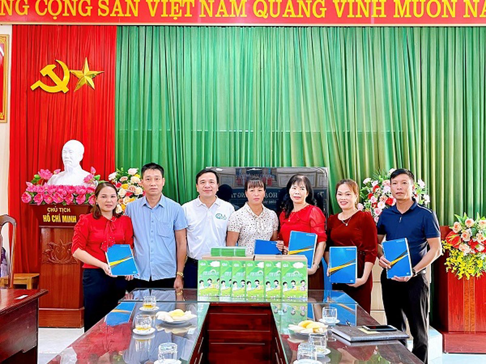 Thay mặt Ban lãnh đạo Tổng công ty Giấy Việt Nam, đồng chí Trần Quốc Vượng – Trưởng Ban Tuyên giáo Truyền thông trao tặng những cuốn vở đến tay thầy cô và học sinh các điểm trường