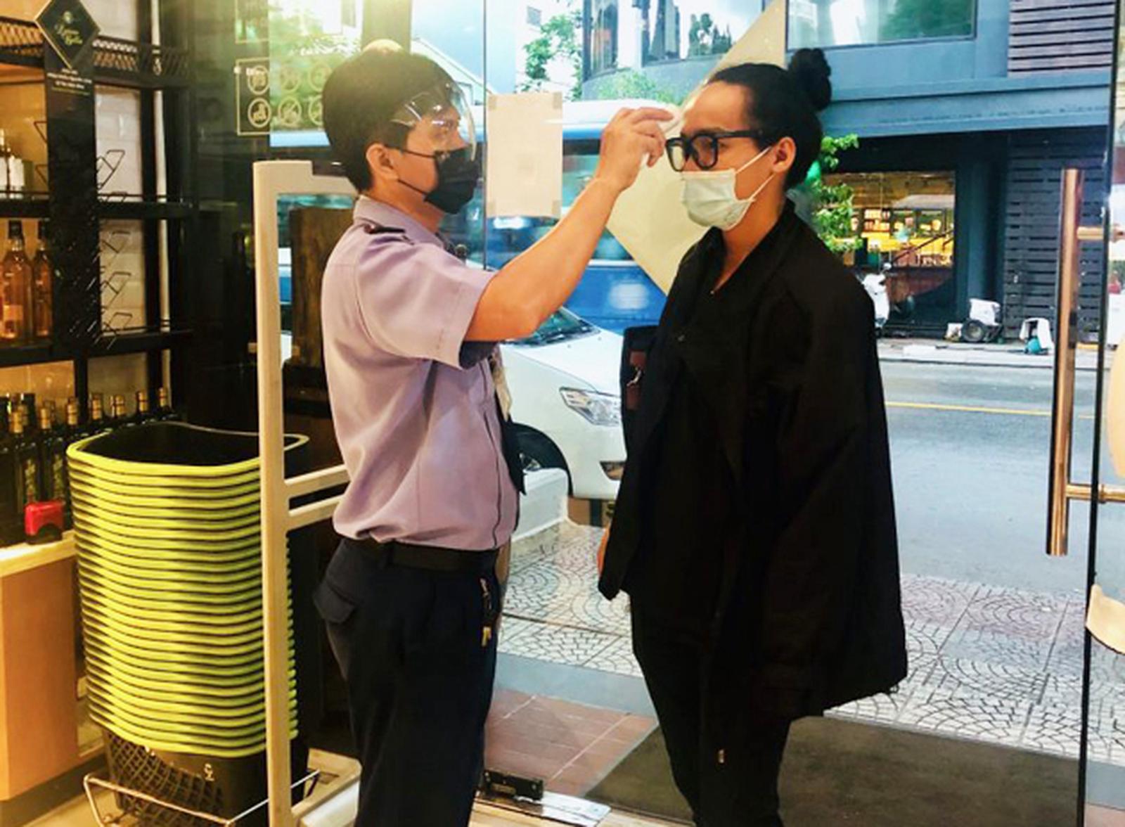 Đo nhiệt độ cho khách hàng trước khi vào Siêu thị Annam Gourmet