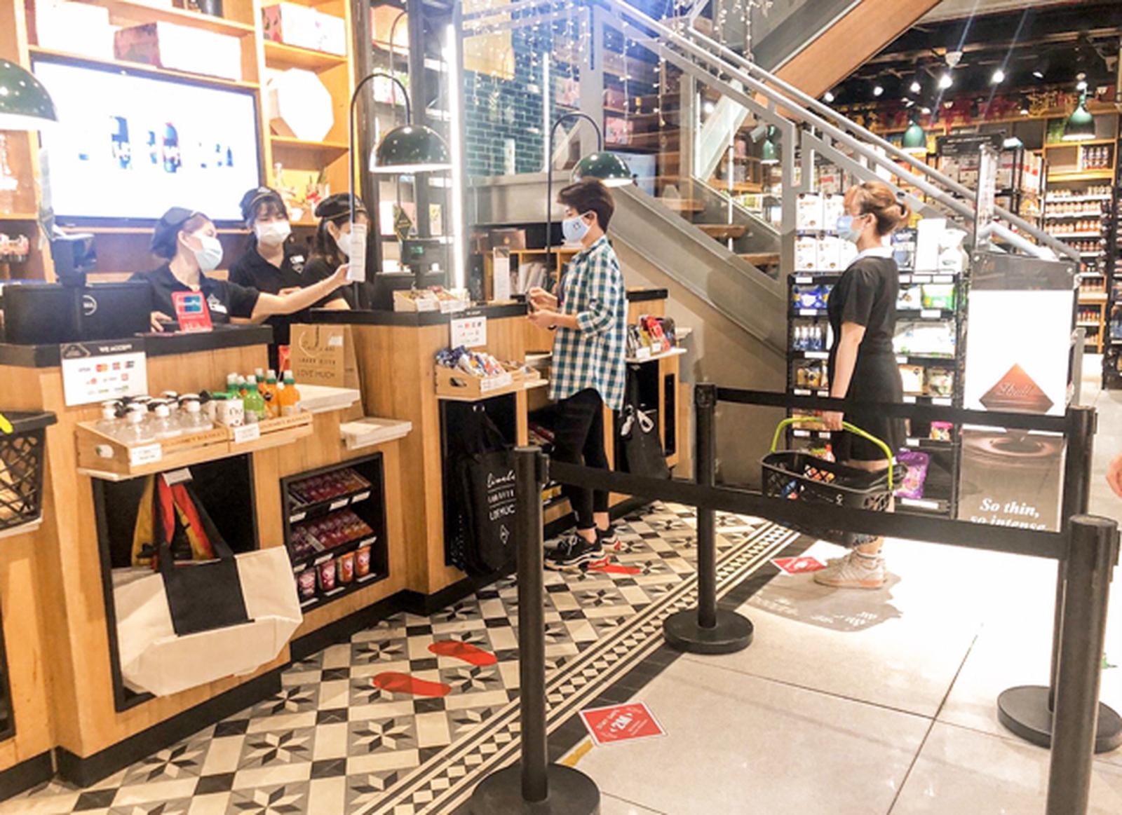Nhân viên công ty Annam Gourmet luôn nhắc nhở khách hàng giữ khoảng cách 2m