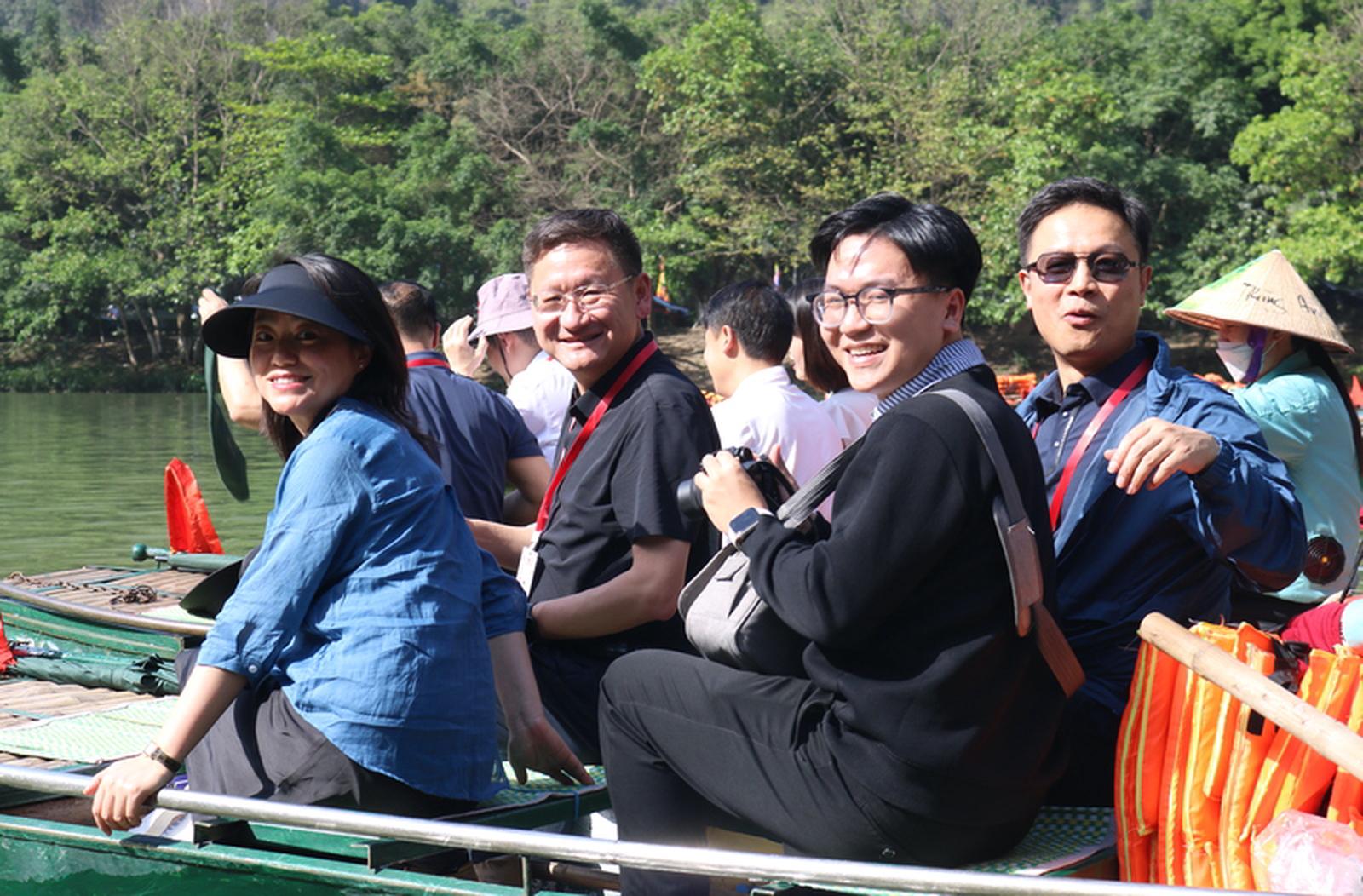 Đại biểu Trung Quốc bày tỏ sự mến mộ, cảm kích trước sự hiếu khách, nhiệt tình của người dân địa phương trong quá trình phục vụ, tiếp đón đại biểu và hướng dẫn tham quan danh thắng Tràng An