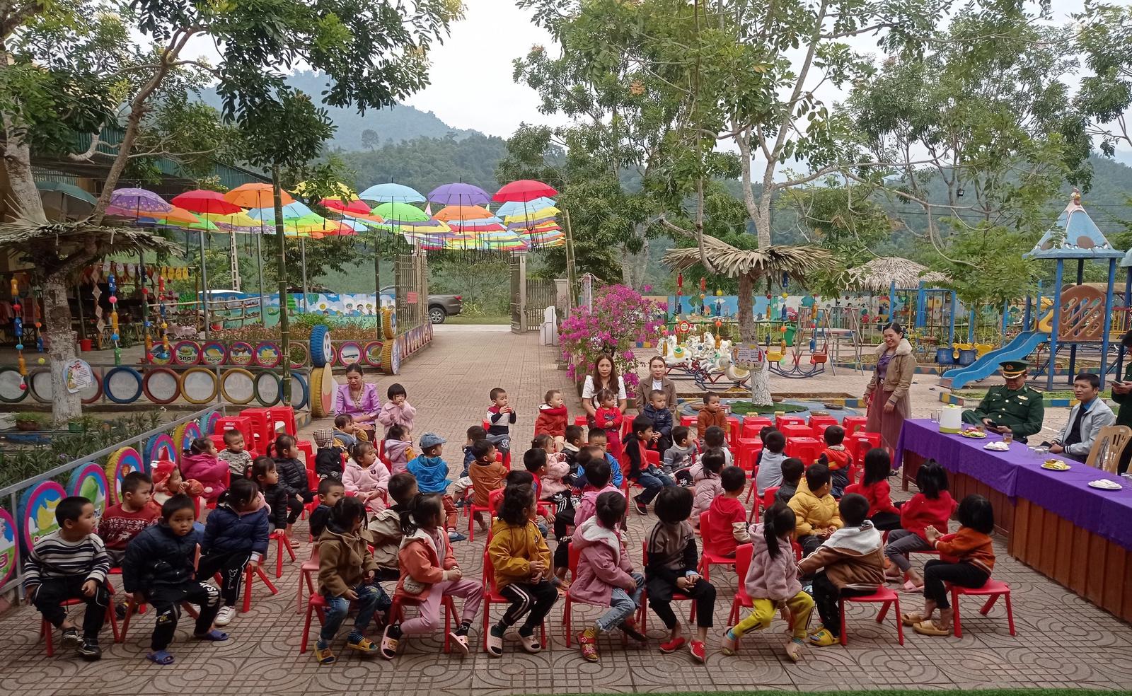 Giáo viên và các cháu nhỏ chuẩn bị đón nhận các phần quà từ các nhà tài trợ. Ảnh: PV