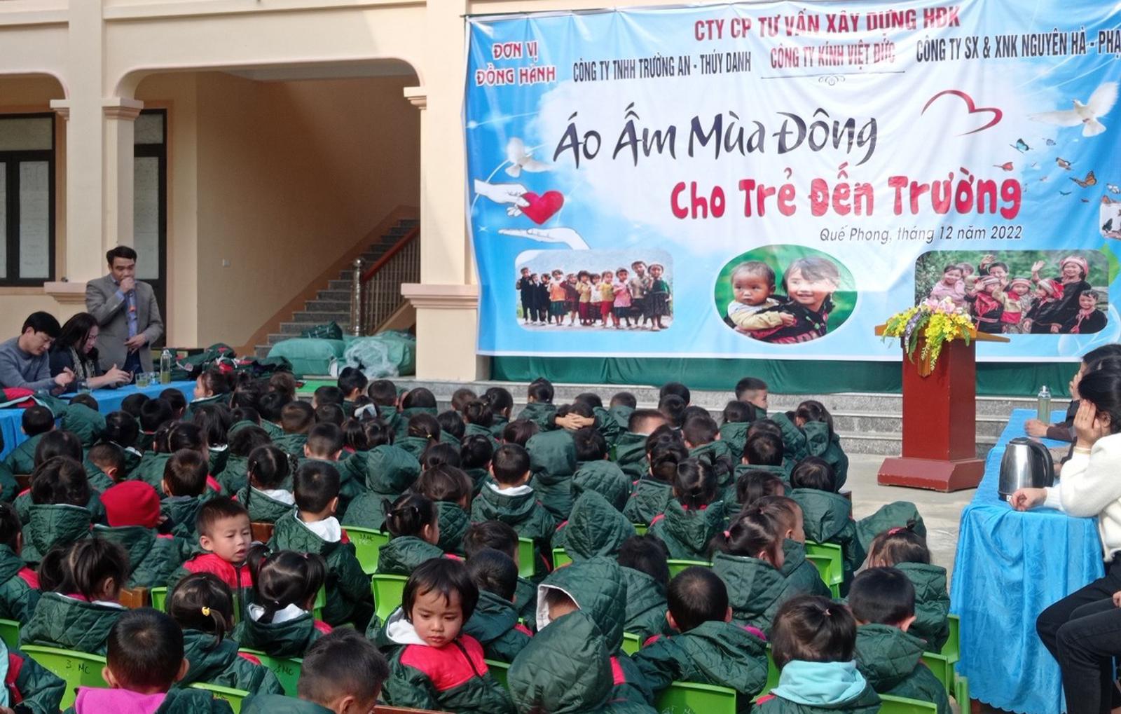 Trong các ngày 22, 23/12, Công ty CP Tư vấn xây dựng HĐK (xã Đà Sơn, huyện Đô Lương, tỉnh Nghệ An) chủ trì, phối hợp với các đơn vị đồng hành là Công ty CP kính Việt Đức (thị trấn Đô Lương, tỉnh Nghệ An); Công ty TNHH Trường An - Thúy Danh (thị trấn Đô Lương, tỉnh Nghệ An) và một số doanh nghiệp đóng chân ở TP Vinh, TP Hà Nội đã tổ chức Chương trình thiện nguyện “Áo ấm mùa đông cho trẻ đến trường” đến 2 trường mầm non Tri Lễ, mầm non Thông Thụ, huyện Quế Phong, Nghệ An.