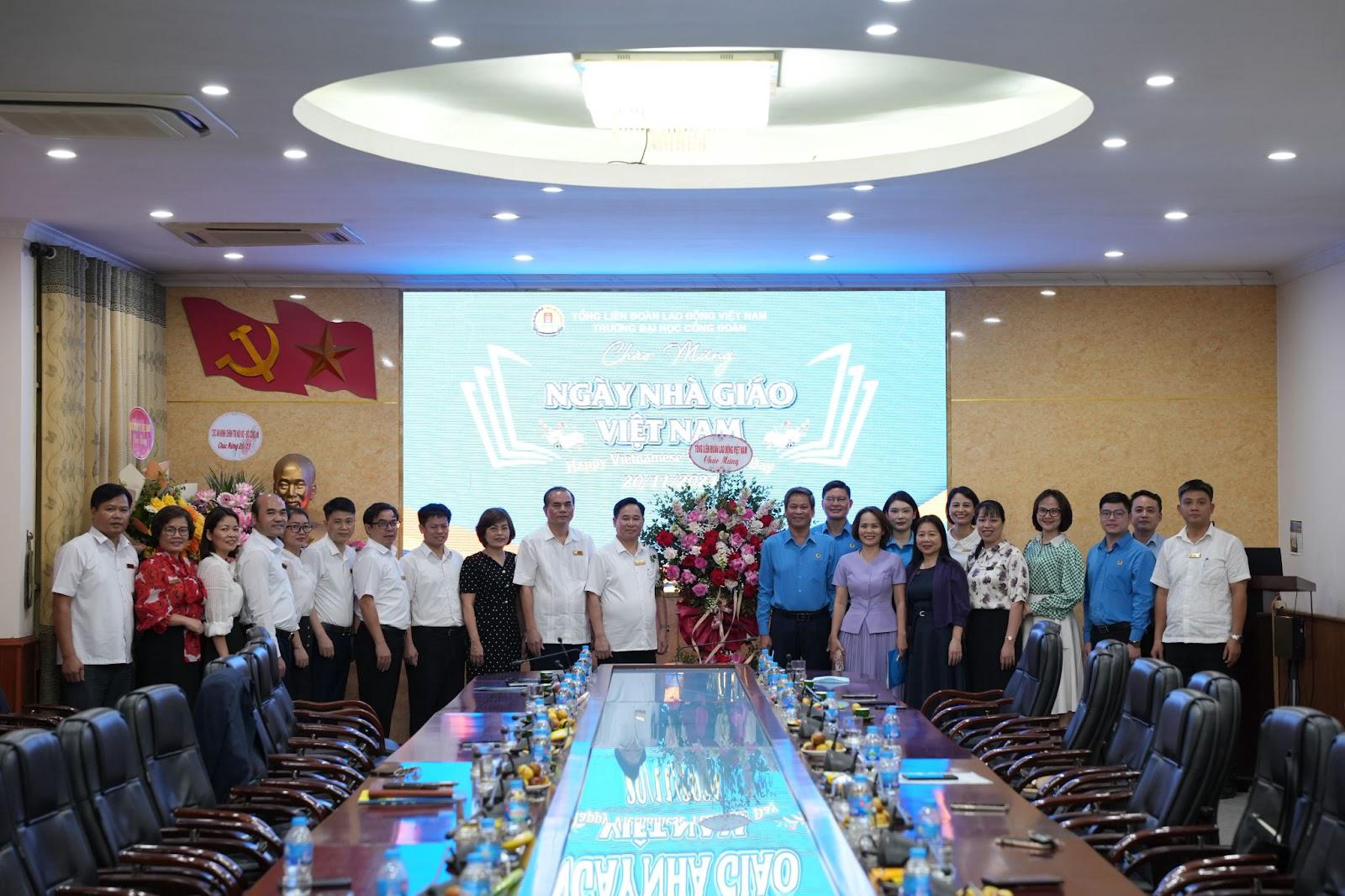 Đoàn đại biểu Tổng Liên đoàn Lao động Việt Nam do Phó Chủ tịch Tổng Liên đoàn Lao động Việt Nam Huỳnh Thanh Xuân làm trưởng đoàn đến thăm, chúc mừng Trường Đại học Công đoàn nhân nhân dịp Ngày nhà giáo Việt Nam.