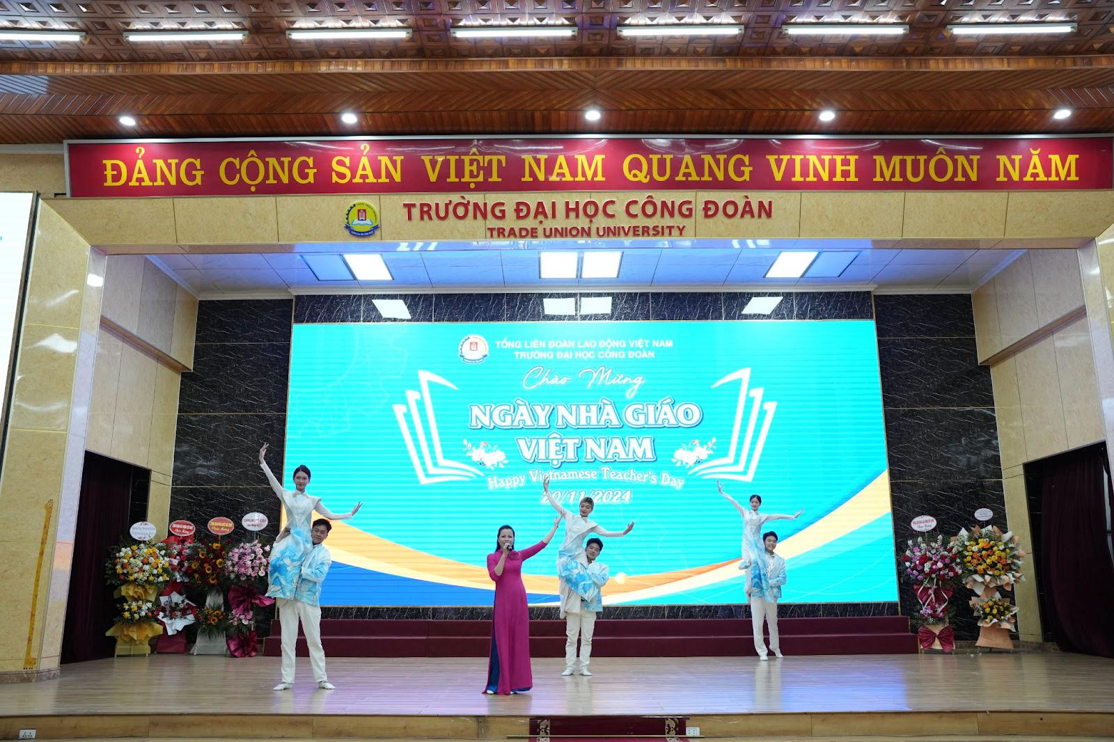 Tiết mục văn nghệ đặc sắc do Giảng viên và Sinh viên Nhà trường biểu diễn tại lễ kỉ niệm.