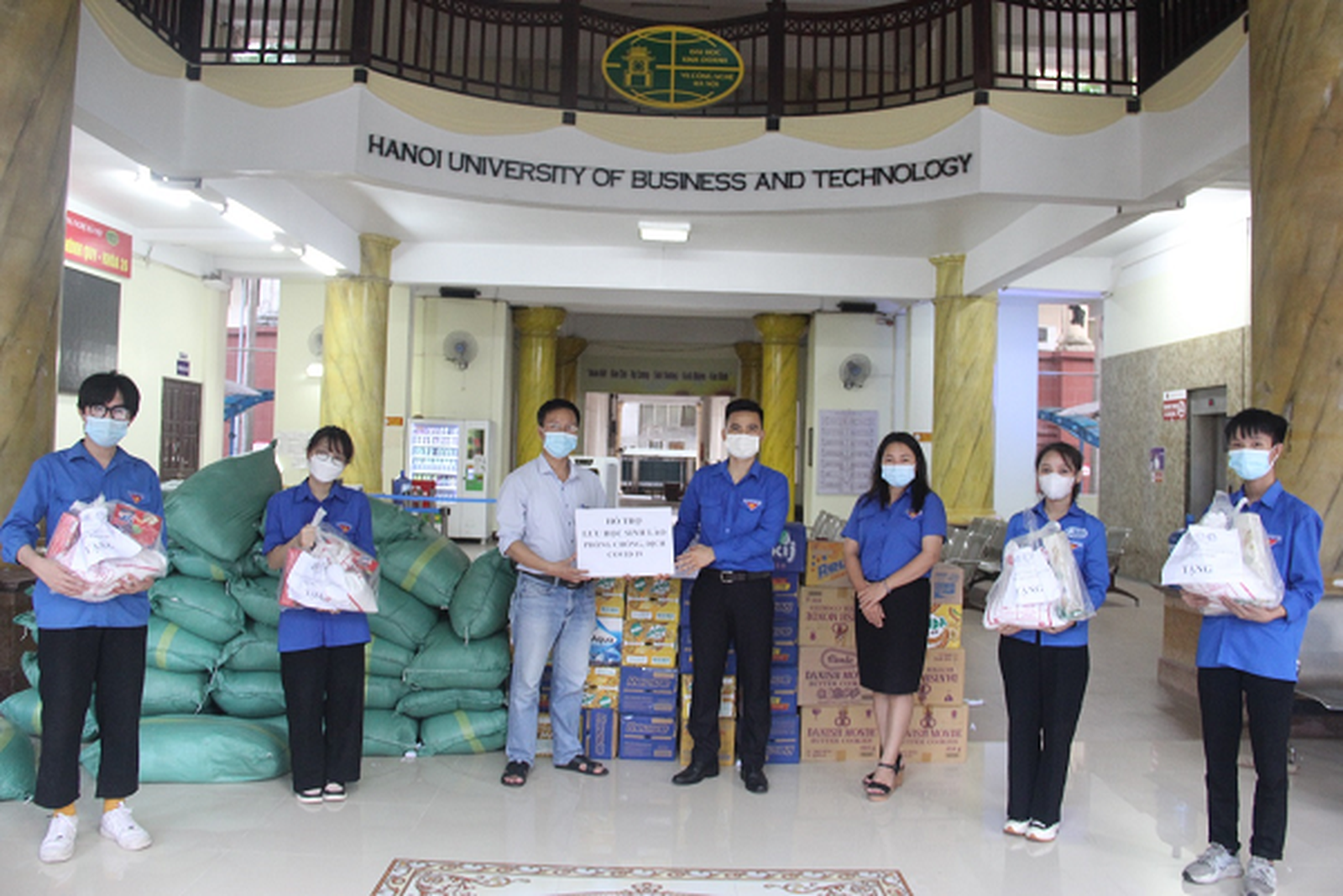 Không chỉ có các em sinh viên Việt Nam gặp khó khăn, trường cũng có rất đông các em du học sinh người Lào đang theo học tại cơ sở Từ Sơn, Bắc Ninh. Các em đã trải qua những đợt bùng phát dịch lớn nhỏ ở một đất nước không phải quê hương của mình, không có gia đình bên cạnh nên nguồn động viên từ bạn bè và thầy cô giáo là nguồn động viên duy nhất có thể giúp các em tiếp tục yên tâm học tập. Hiểu tâm lý đó của các em, Ban Giám hiệu nhà trường cũng như Đoàn Thanh niên, Hội Sinh viên đã nhanh chóng phối hợp với các đơn vị tài trợ tổ chức 9 đợt trao tặng nhu yếu phẩm cần thiết trong thời gian giãn cách. Thêm vào đó, Phòng khám Đa khoa Phúc An cũng phối hợp với Phòng Quản trị B và Cơ sở Y tế thành phố Từ Sơn có những phương án cách ly và chữa bệnh kịp thời với những ca F0 là sinh viên Lào. Trong đợt nghỉ lễ 30/4 vừa qua, trường đã tổ chức tiêm mũi vaccine thứ 4 cho 101 sinh viên Lào đang học tập tại cơ sở Từ Sơn.