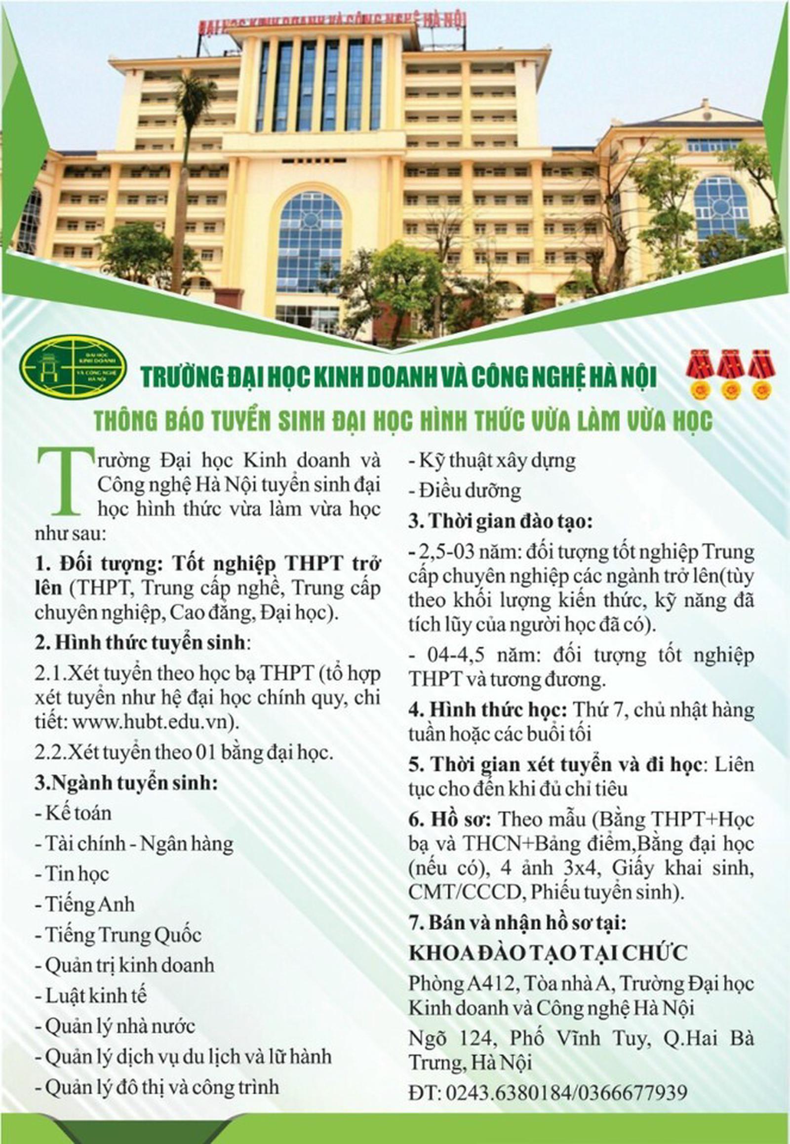 Trường Đại học Kinh doanh và Công nghệ Hà Nội tuyển sinh đại học hình thức vừa làm vừa học