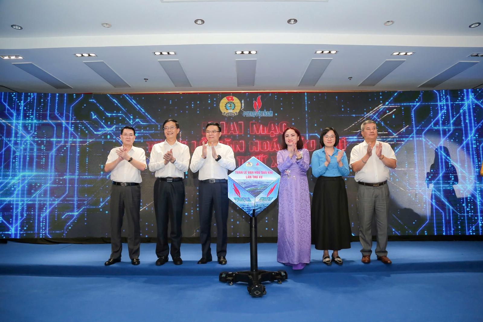 Các đại biểu thực hiện nghi thức khai mạc Tuần lễ Văn hoá Dầu khí lần thứ XV