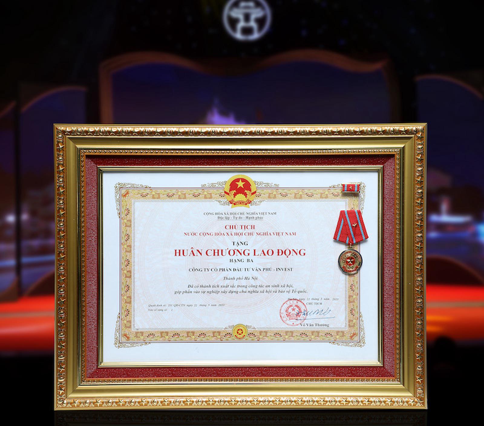 (Thanh tra) - Với những nỗ lực không ngừng, Văn Phú – Invest đã gặt hái được những thành tích đáng tự hào khi liên tục có mặt trong các bảng xếp hạng uy tín và vinh dự đón nhận Huân chương Lao động hạng Ba, do Đảng, Nhà nước trao tặng.