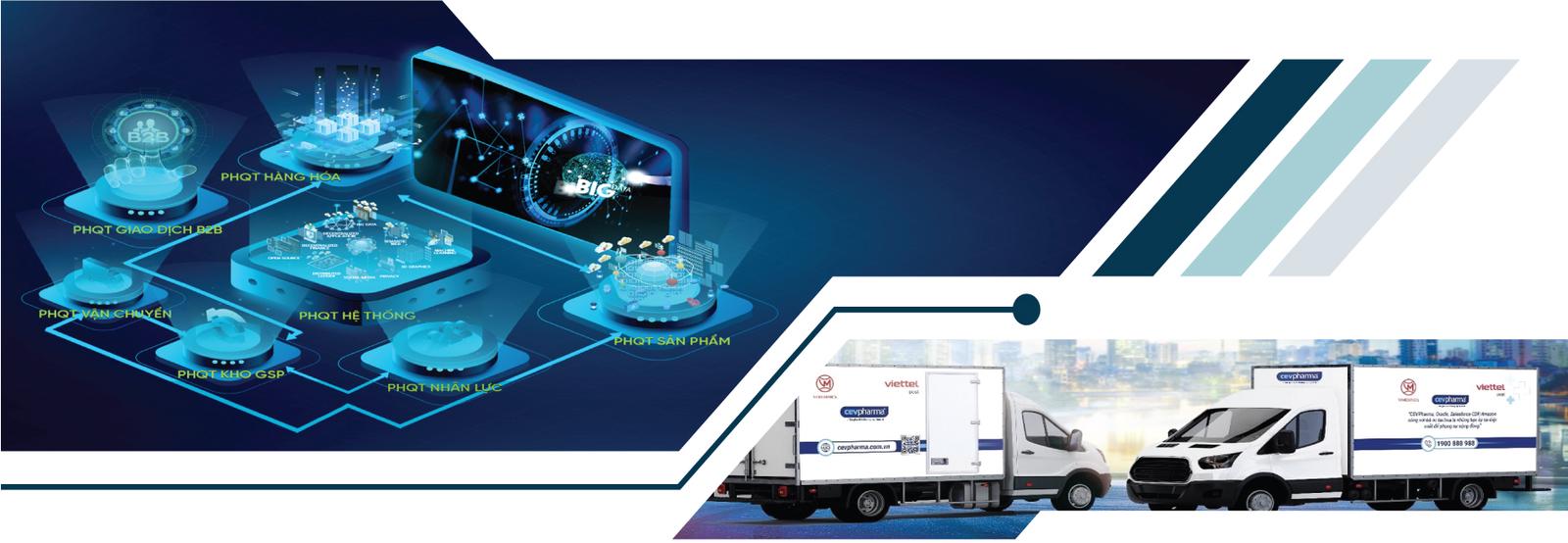 1) Phân hệ quản lý kênh phân phối mua buôn trực tuyến 24/7 của KHM tuyến huyện trên CEVPharma và Kênh phân phối bán chéo sản phẩm phục vụ 20 triệu khách hàng đang sử dụng MBBank, App Mobile thông qua giải pháp nhúng Website CEVPharma với MBBank App Mobile dành cho KHM là các đại lý phân phối của 590 huyện của 63 tỉnh, thành (ĐLPP) trên nền tảng cài đặt hệ thống POS của CEVPharma để giúp ĐLPP quản lý toàn bộ các giao dịch nhập hàng, quản lý hàng tồn kho theo Lô, hạn sử dụng, quản lý bán hàng… và được kết nối trực tiếp đến hệ thống sàn giao dịch TMĐT quốc tế CEVPharma để nhận các đơn hàng từ kênh bán chéo.