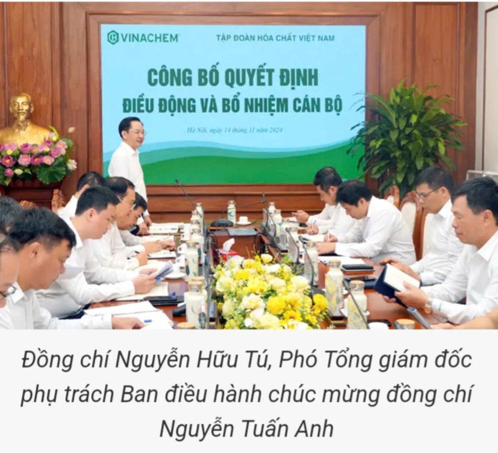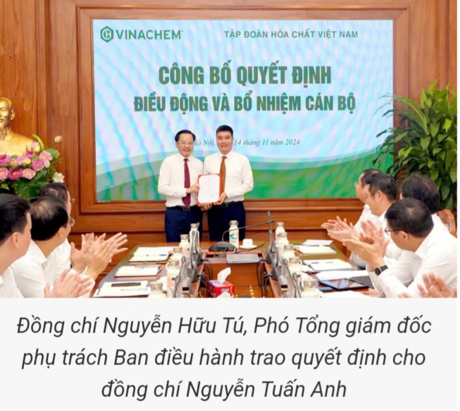 Theo Quyết định số 279/QĐ-HCVN ngày 17 tháng 10 năm 2024, điều động và bổ nhiệm có thời hạn ông Nguyễn Tuấn Anh, Ủy viên Ban chấp hành Đảng bộ Tập đoàn, Trưởng ban Truyền thông và Phát triển Tập đoàn giữ chức vụ Chánh Văn phòng Tập đoàn Hóa chất Việt Nam.