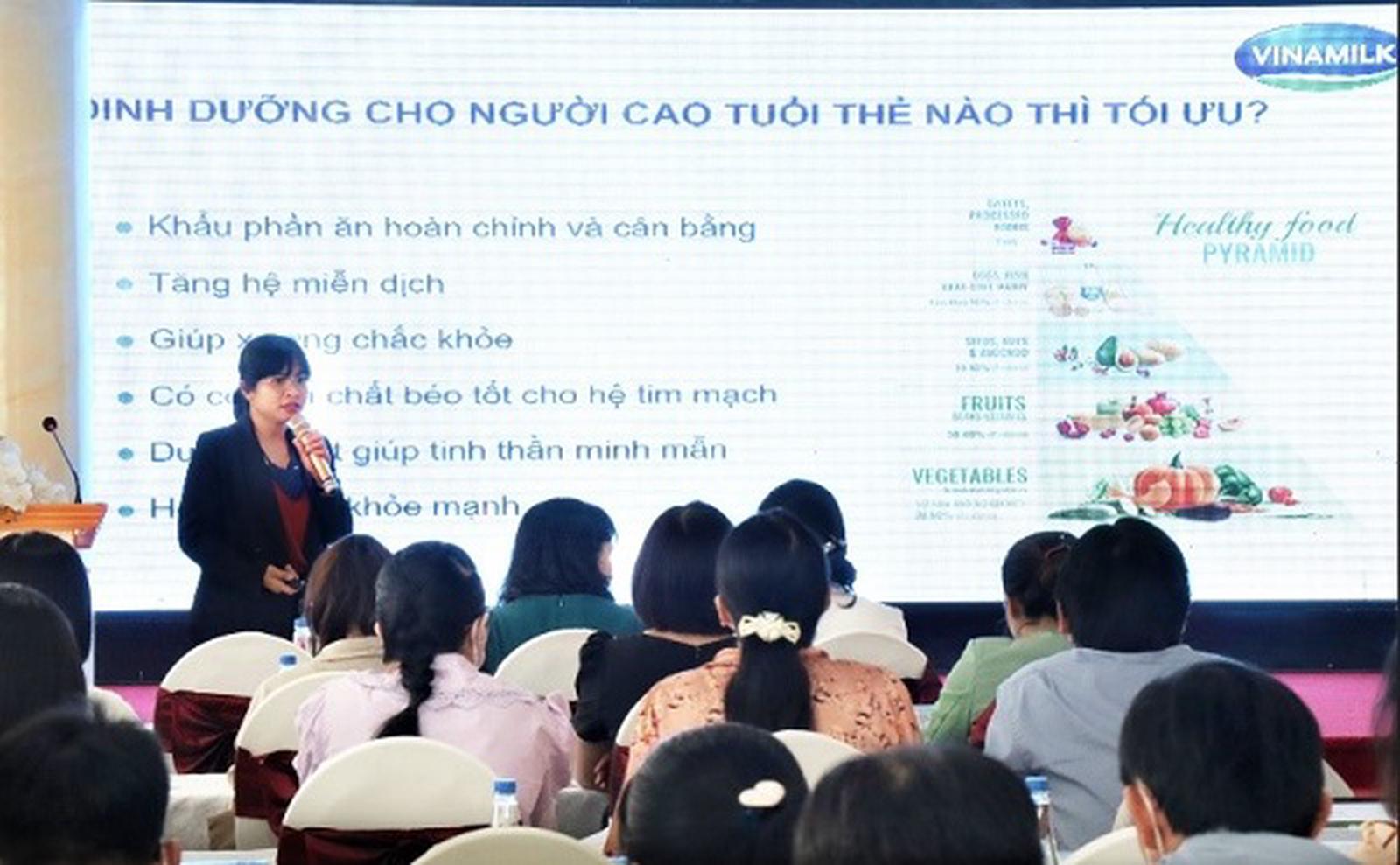 Đại diện công ty Vinamilk trình bày vai trò dinh dưỡng đối với sức khỏe của người cao tuổi