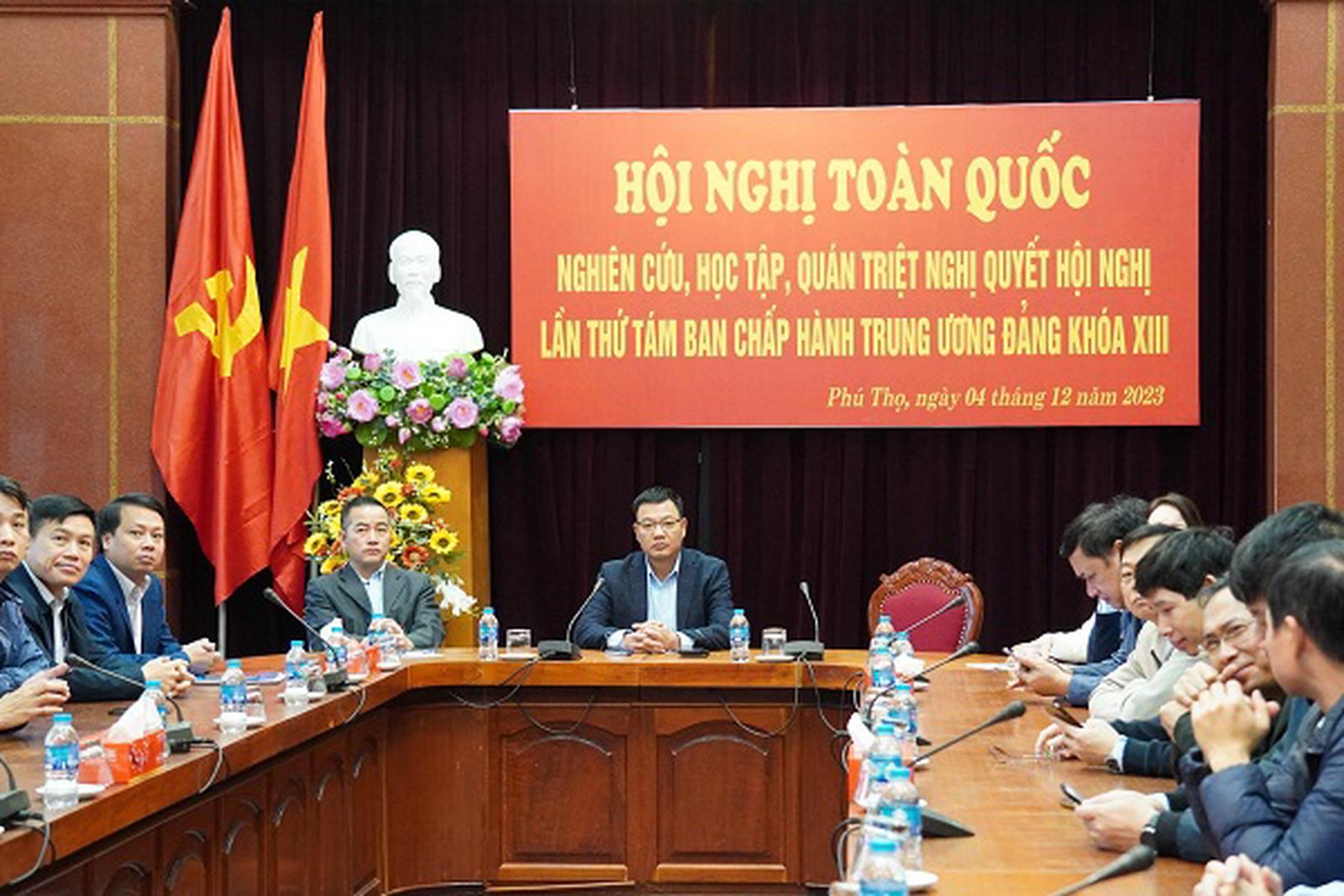 (Thanh tra) - Ngày 04/12/2023, Đảng ủy Tổng công ty Giấy Việt Nam tổ chức Hội nghị nghiên cứu, học tập, quán triệt Nghị quyết Hội nghị lần thứ tám Ban Chấp hành Trung ương Đảng khóa XIII tại Phòng họp 3 – Tổng công ty Giấy Việt Nam (thị trấn Phong Châu, huyện Phù Ninh, tỉnh Phú Thọ) bằng hình thức trực tuyến kết nối với điểm cầu Đảng ủy Khối Doanh nghiệp Trung ương.