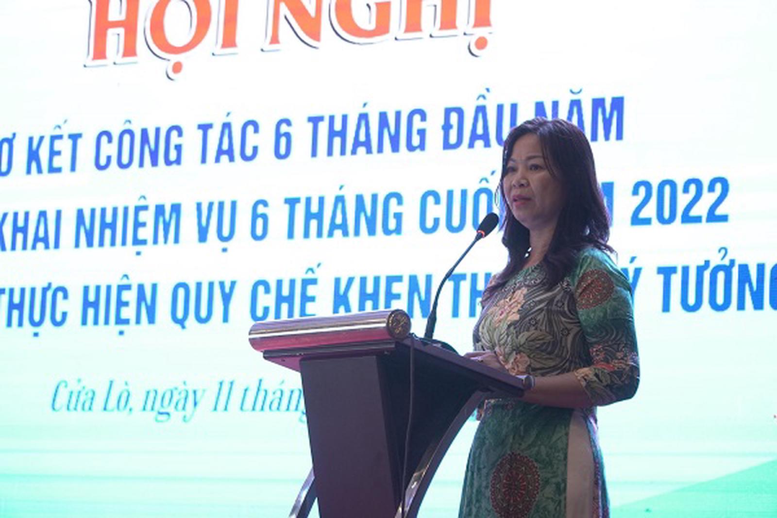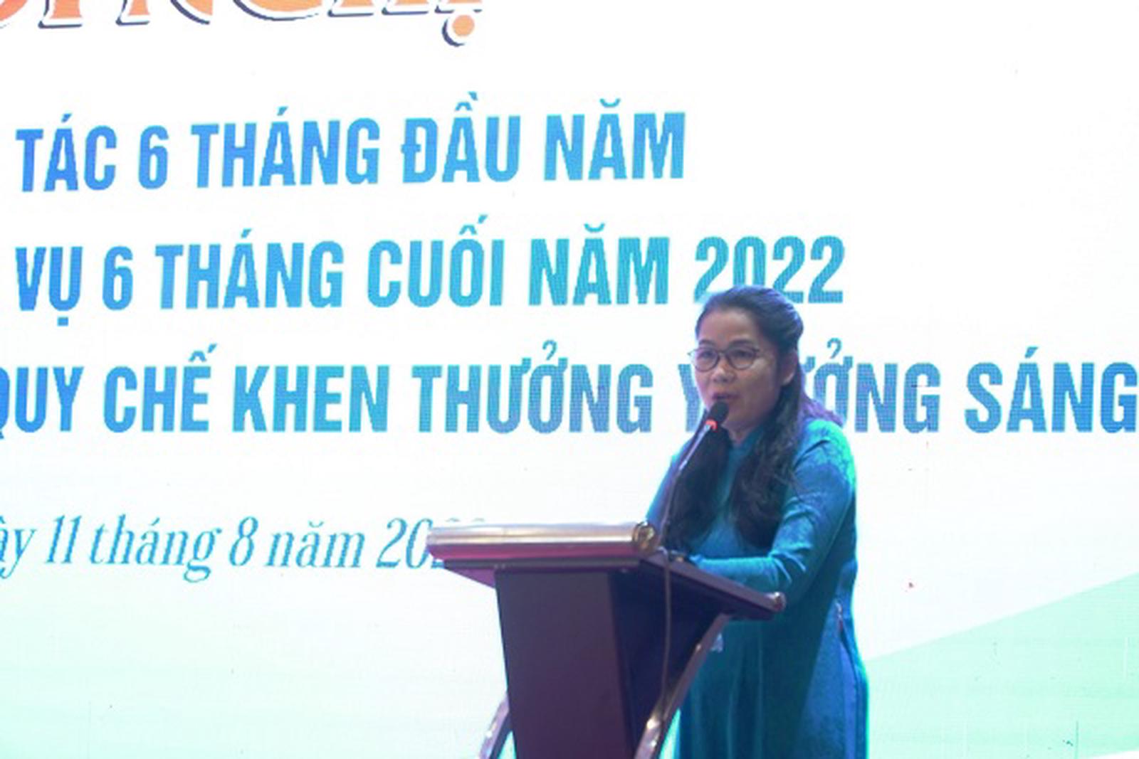 Đồng chí Ngô Thị Thu Hằng – Chủ tịch Công đoàn Tổng công ty trình bày báo cáo công tác công đoàn 6 tháng đầu năm 2022 tại Hội nghị