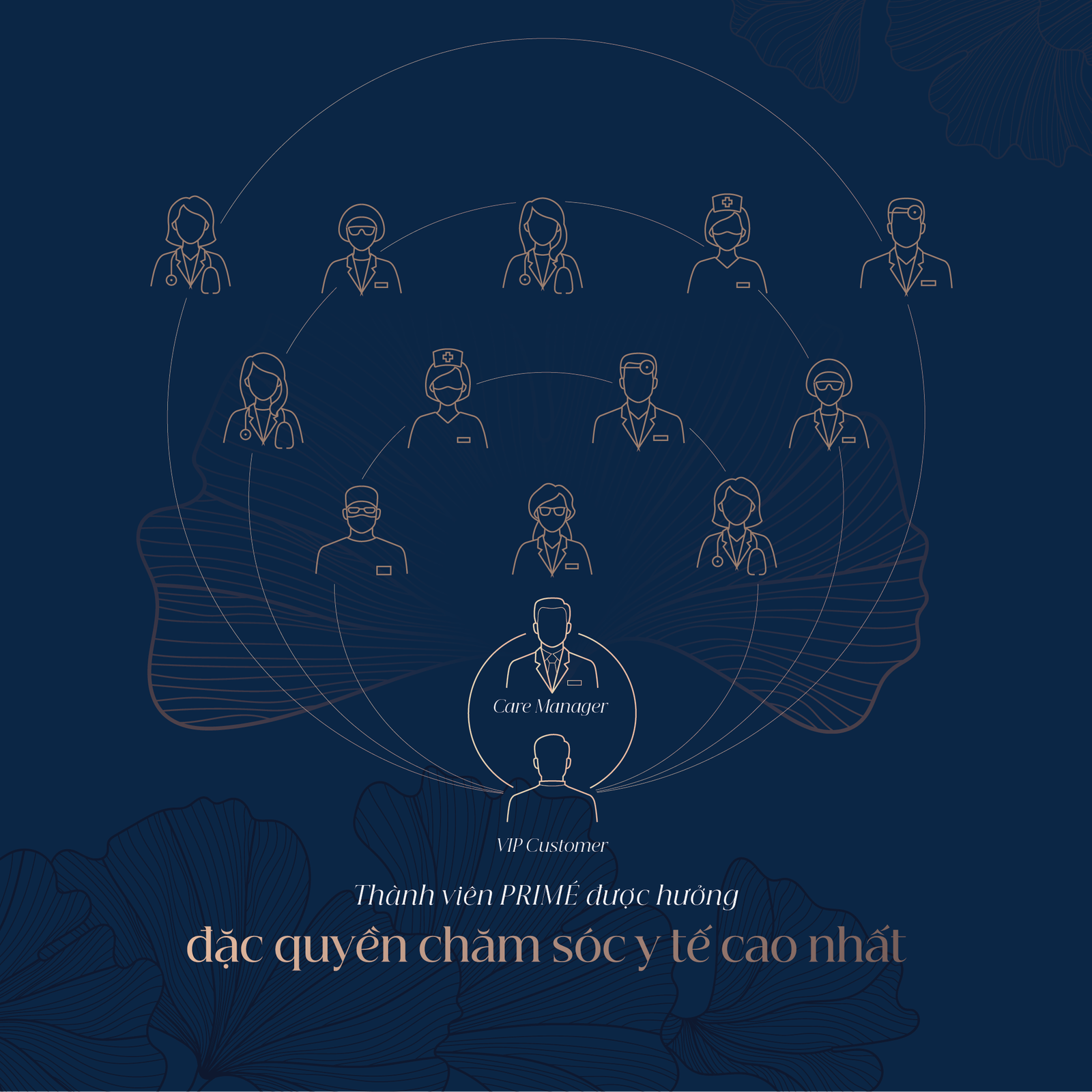 Mỗi khách hàng VinCare PRIMÉ sẽ được chăm sóc chuyên biệt bởi một Bác sĩ riêng và một Điều phối viên chăm sóc 24/7. Điều phối viên sẽ là đầu mối tiếp nhận mọi yêu cầu liên quan đến vấn đề sức khỏe và sắp xếp với đội ngũ chuyên môn, vận hành... để phục vụ thuận tiện nhất theo mong muốn của khách hàng trong thời gian nhanh nhất.