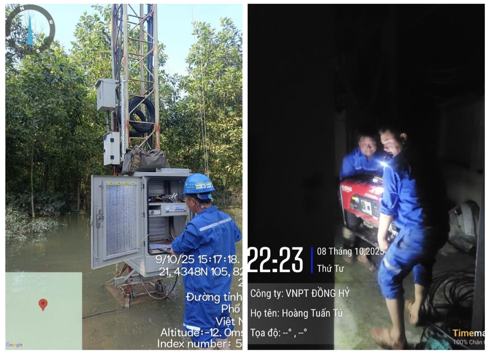Hàng nghìn cán bộ kỹ thuật của VNPT vẫn bám trụ tại các khu vực bị lũ lụt, ngày đêm khẩn trương khắc phục sự cố. .Ảnh: Q.T
