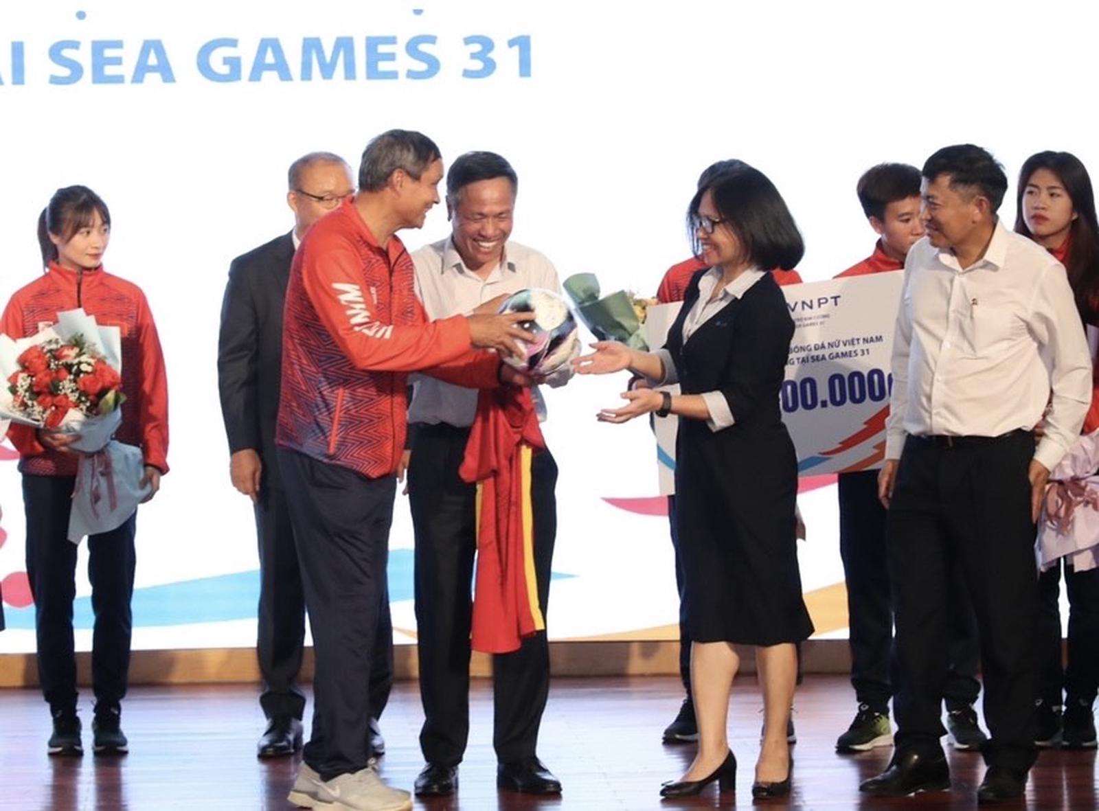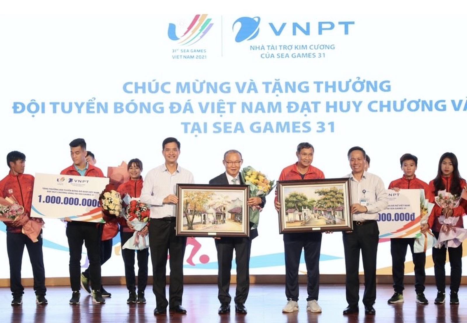 (Thanh tra) - Nhằm động viên tinh thần các cầu thủ của đội tuyển bóng đá nam U23 và tuyển bóng đá nữ Việt Nam, ngay sau chiến thắng vang dội tại SEA Games 31, Tập đoàn Bưu chính viễn thông Việt Nam (VNPT) đã tổ chức lễ chúc mừng và thưởng “nóng” cầu thủ 2 đội tuyển với tổng trị giá 2 tỷ đồng.