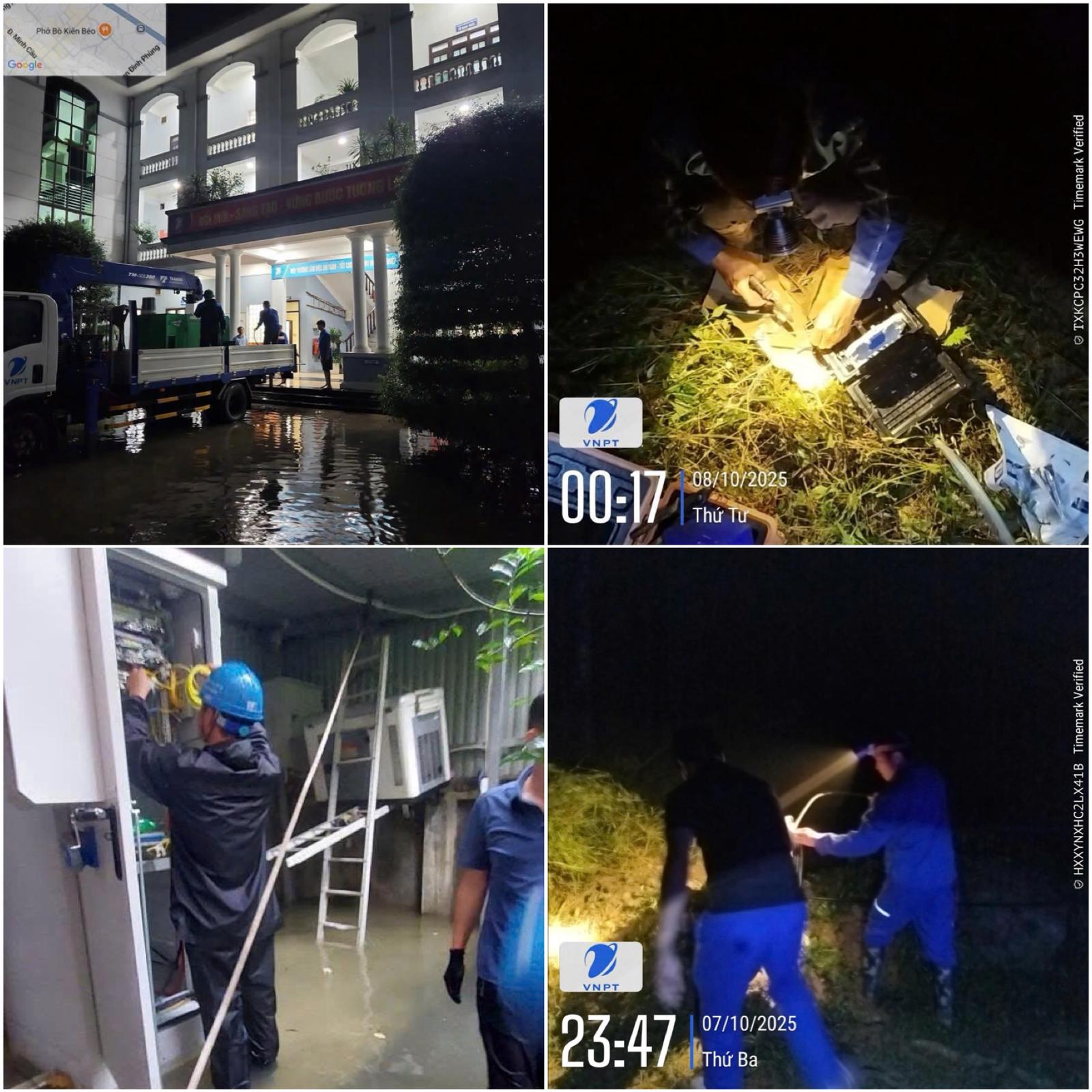 VNPT Thái Nguyên đã chủ động tăng cường các máy phát điện dự phòng tại nút mạng trung tâ, nhân lực ứng trực chủ động triển khai phương án đảm bảo nguồn điện dự phòng kịp thời ngay trong đêm 7/10 khi cả thành phố Thái Nguyên ngập chìm trong nước lũ đảm bảo an toàn thông tin cho trạm nút mạng.