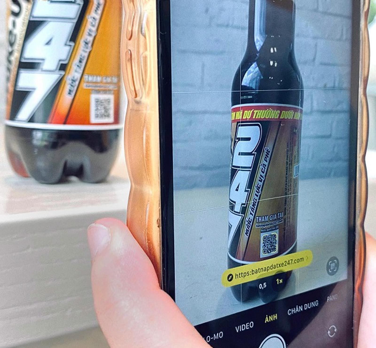 Người chơi quét mã QR trên chai để tham gia chương trình