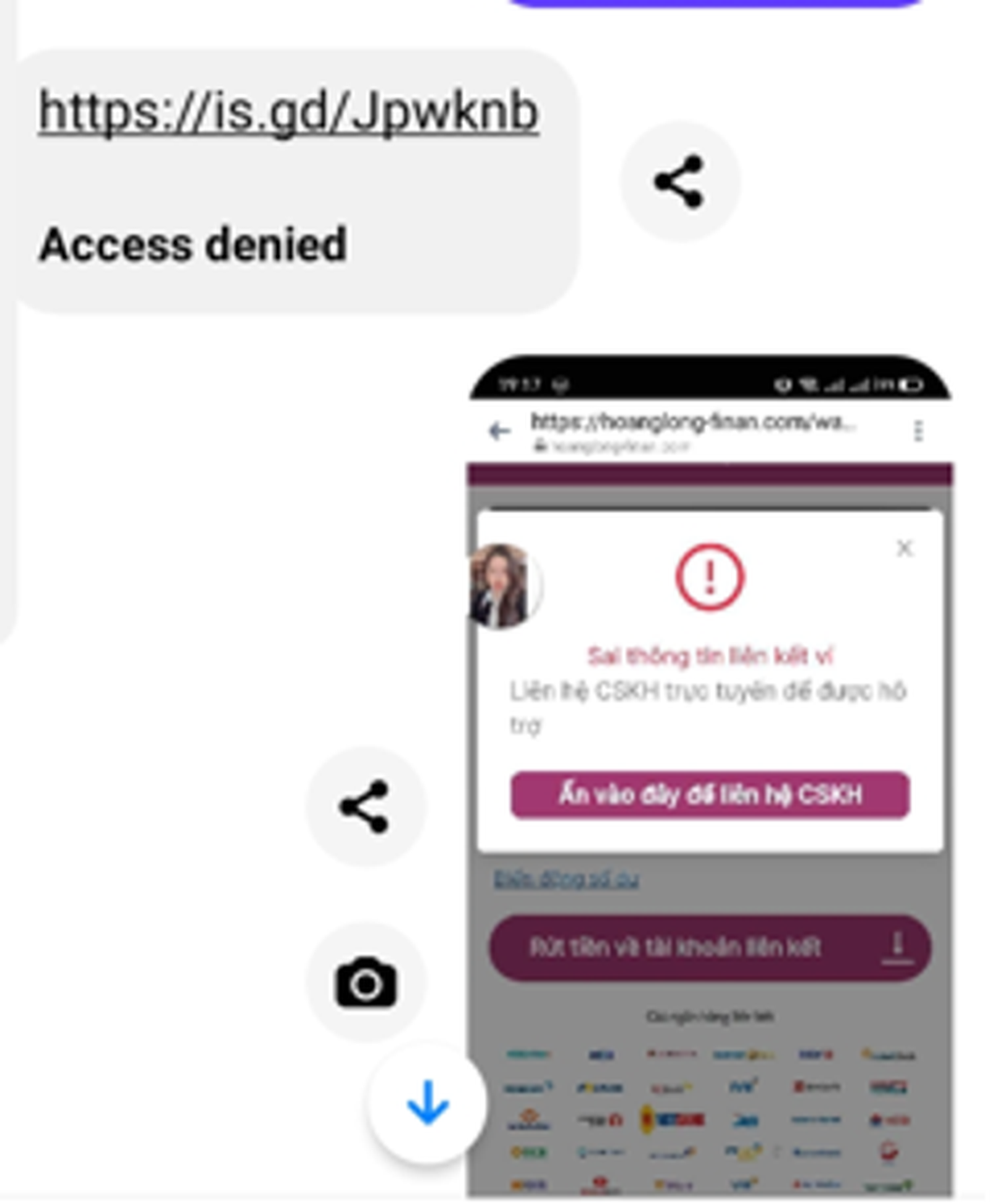 Chúng sẽ gửi cho khách hàng đường link yêu cầu khách hàng truy cập và làm theo hướng dẫn. Để tạo lòng tin, các đối tượng còn lập trình trang website đầy đủ các bước như các app cho vay online chính thống. Tuy nhiên, khi đến bước nhận tiền thì đối tượng thông báo tài khoản khách hàng đã bị đóng băng không thể giải ngân. Sau đó chúng yêu cầu khách hàng liên hệ với hệ thống chăm sóc khách hàng để được hướng dẫn. Khi khách hàng liên hệ, đối tượng lừa đảo nêu lý do: khách hàng cung cấp sai thông tin nên không thể không giải ngân.