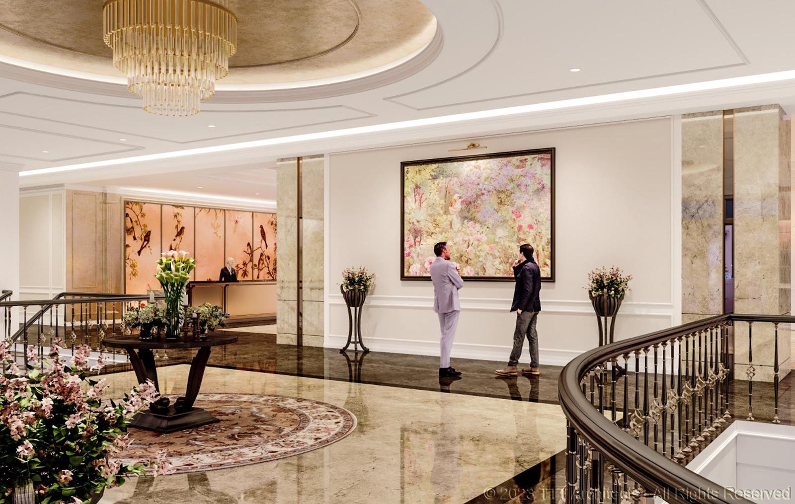 Ngay từ sảnh chính, du khách sẽ cảm nhận được rõ rệt “Giáng Xuân” trong từng chi tiết thiết kế. Bắt nguồn từ tiết trời đầu tiên của một năm với hình tượng những cánh hoa đang chớm nở, vừa nhẹ nhàng vừa tự nhiên, những màu sắc này mang đến một không gian dịu dàng và yên tĩnh, tất cả như đắm chìm trong một bức tranh sống động của mùa Xuân.
