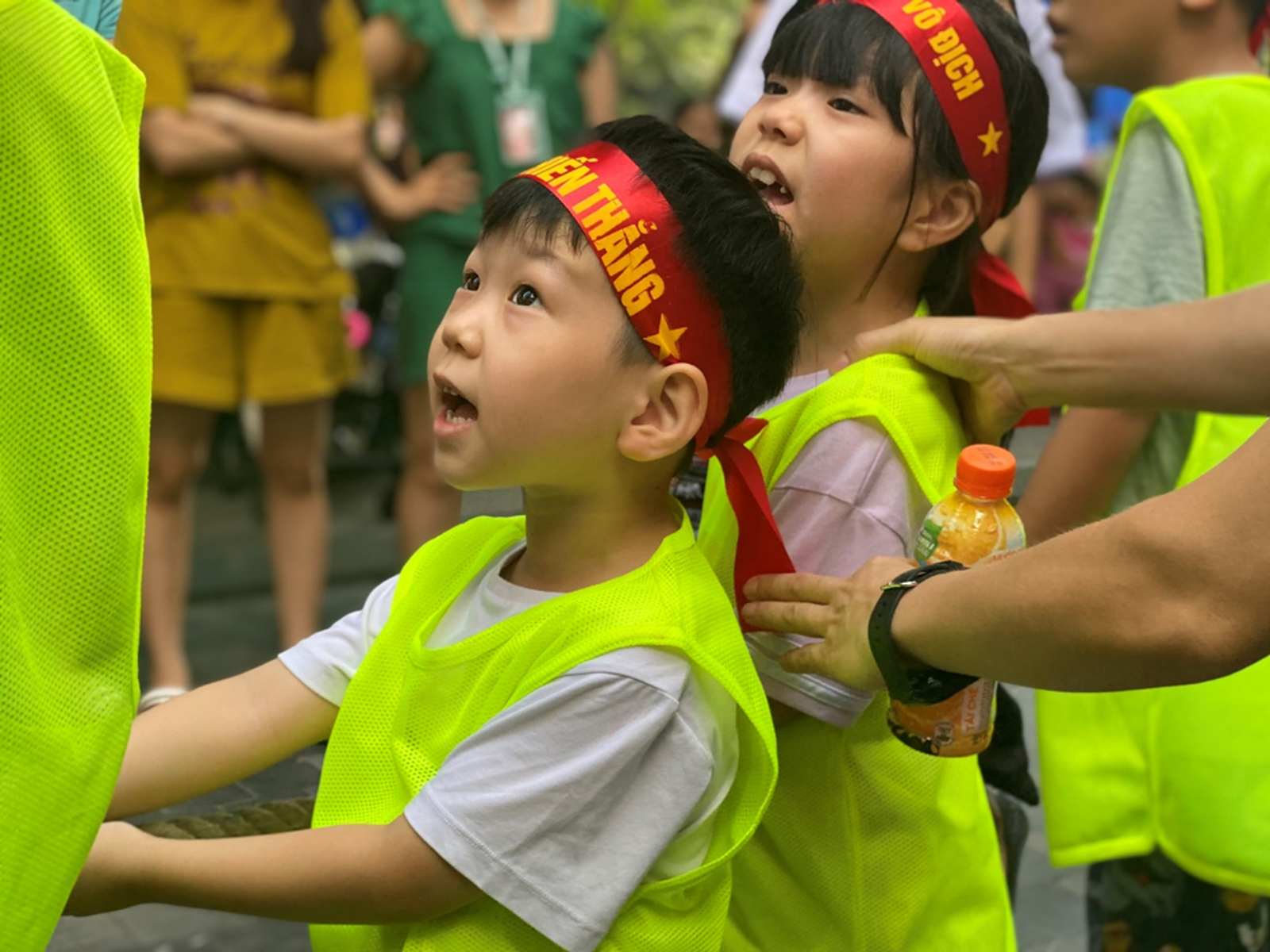 Tránh xa smartphone, các em đón nhận niềm vui trong trò chơi kéo co. Ảnh: TNPM