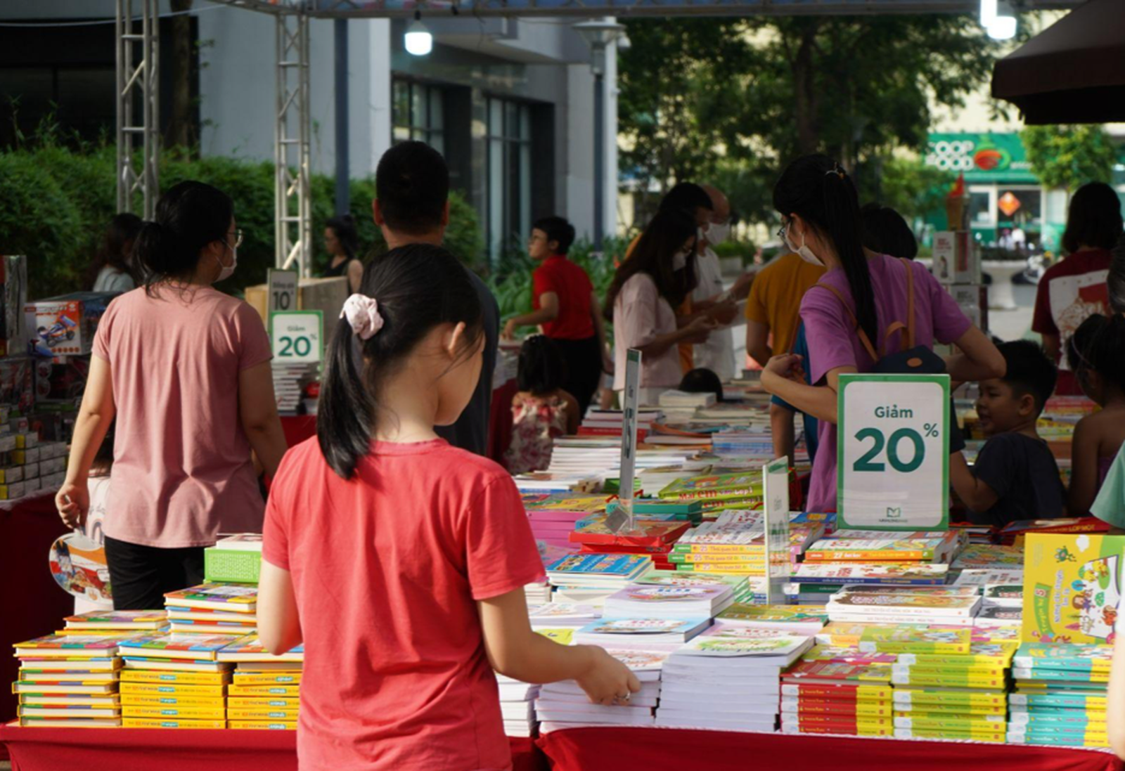 "Tiếp lửa” tri thức trong ngày hội sách ngay tại sân khu đô thị. Ảnh: TNPM